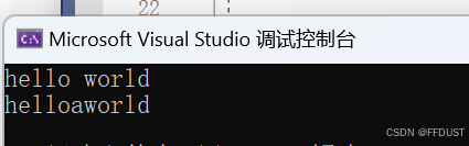 int main(){string s6("hello world");cout << s6 << endl;s6[5] = 'a'; //将下标为5的字符修改成acout << s6 << endl;return 0;} 运行结果: