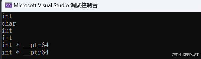 int main(){string s("FFDUST");cout << "s的空间大小为:"<<s.capacity() << endl;}