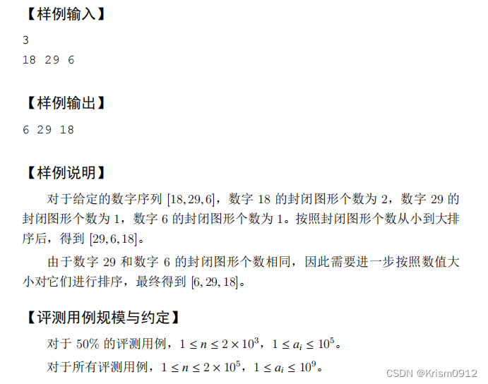 from functools import cmp_to_keycnt=[1,0,0,0,1,0,1,0,2,1]def get(num): res=0 for w in str(num): res+=cnt[int(w)] return resdef f(a,b): if a==b: return 0 x,y=get(a),get(b) if x==y: return -1 if a<b else 1 elif x<y: return -1 else: return 1def solve(): n=int(input()) a=list(map(int,input().split())) a.sort(key=cmp_to_key(f)) print(*a) solve() D题 商品库存管理