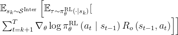 ![\mathbb{E}_{\tau \sim \pi_{\theta}^{\mathrm{RL}}}\left[\sum_{t=1}^{T} \nabla_{\theta} \log \pi_{\theta}^{\mathrm{RL}}\left(a_{t} \mid s_{t-1}\right) R\left(s_{t-1}, a_{t}\right)\right]](http://zhangshiyu.com/zb_users/upload/2024/11/20241126120127173259368723008.png)