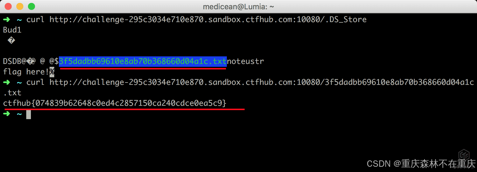 结合题目提示,不太好使的情况下, 试着手工解决,在浏览器里输入这个flag文件(这里就直接用curl了);