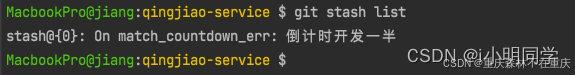<2>查看刚才保存的工作进度 `git stash list` (一般先使用 git stash list 查看有没有已经 stash 的记录,避免和自己的混淆,到时候使用时不知道是哪条记录)