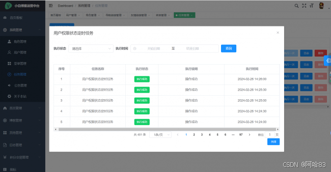 配置项目中用到的一些的定时任务,也可以查看定时任务的执行日志