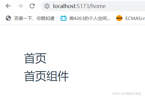 <template> <div>首页组件</div></template> 2、二级路由路径配置