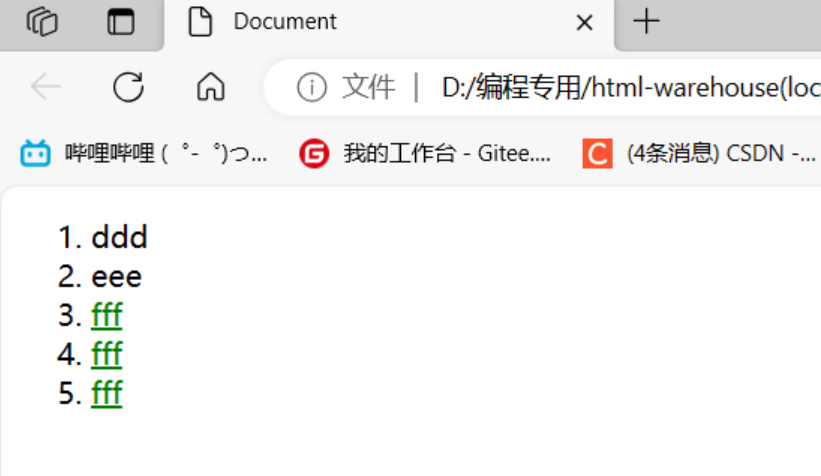<ol class="one"> <li>ddd</li> <li>eee</li> <li><a href="#">fff</a></li> <li><a href="#">fff</a></li> <li><a href="#">fff</a></li></ol> .one li a { color: green;}