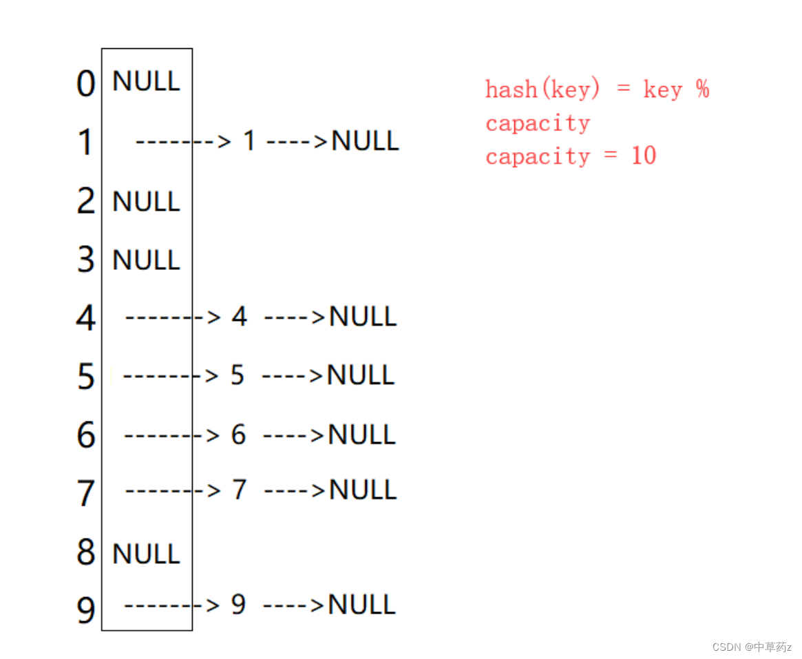 // key-value 模型public class HashBucket { private static class Node { private int key; private int value; Node next; public Node(int key, int value) { this.key = key; this.value = value; } } private Node[] array; private int size; // 当前的数据个数 private static final double LOAD_FACTOR = 0.75; private static final int DEFAULT_SIZE = 8;//默认桶的大小 public int put(int key, int value) { int index = key % array.length; Node cur = array[index]; //遍历当前列表,看是否存在当前值 while (cur != null) { if (cur.key == key) { cur.value = value; } cur = cur.next; } //若无当前值,则进行头插法 Node node = new Node(key, value); node.next = array[index]; array[index] = node; size++; //判断是否超载 if (loadFactor()>=LOAD_FACTOR){ //扩容 resize(); } return 0; } private void resize() { Node[] newArr=new Node[array.length*2]; for (int i = 0; i < array.length; i++) { Node cur=array[i]; while(cur!=null){ //遍历链表,将数据储存到新数组 int newIndex=cur.key% newArr.length; Node curN=cur.next; cur.next=newArr[newIndex]; newArr[newIndex]=cur; cur=curN; } } array=newArr; } private double loadFactor() { return size * 1.0 / array.length; } public HashBucket() { array=new Node[10]; } public int get(int key) { int index=key%array.length; Node cur=array[index]; while(cur!=null){ if (cur.key==key){ return cur.value; } cur=cur.next; } return -1; }} ?3.总结