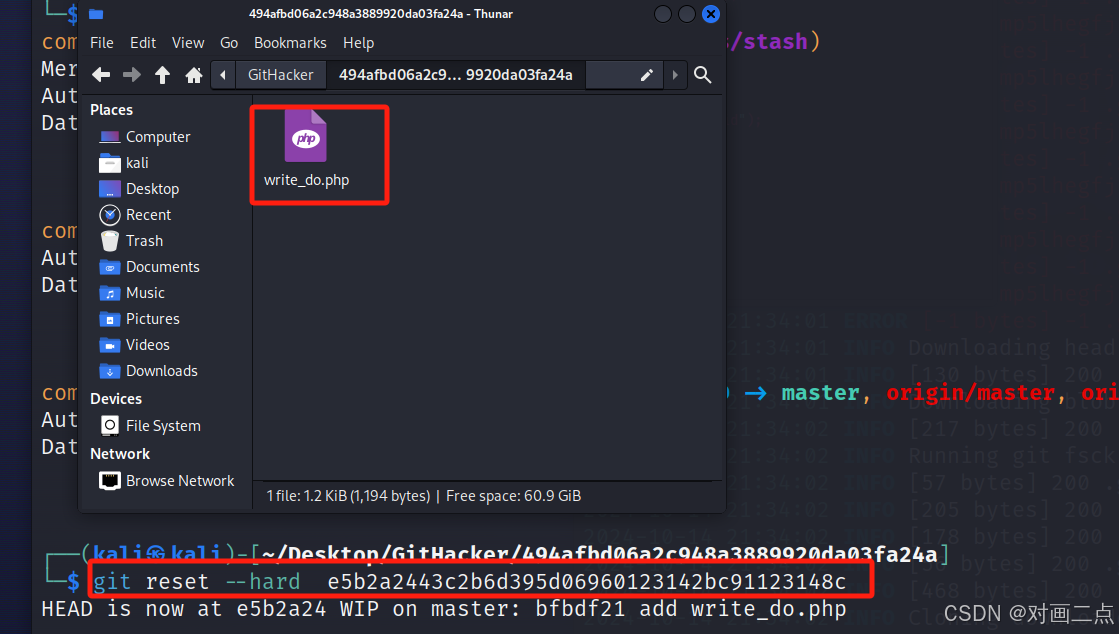 下载地址:https://github.com/WangYihang/GitHacker这个工具在linux系统上比较好用,按工具拷贝进去或者直接下载,然后输入命令就可以使用。githacker --url http://2b661b6a-7be0-408c-84e4-0aa48b856bee.node4.buuoj.cn:81/ --output-folder 123 #(123是个目录,你可以随便起名)