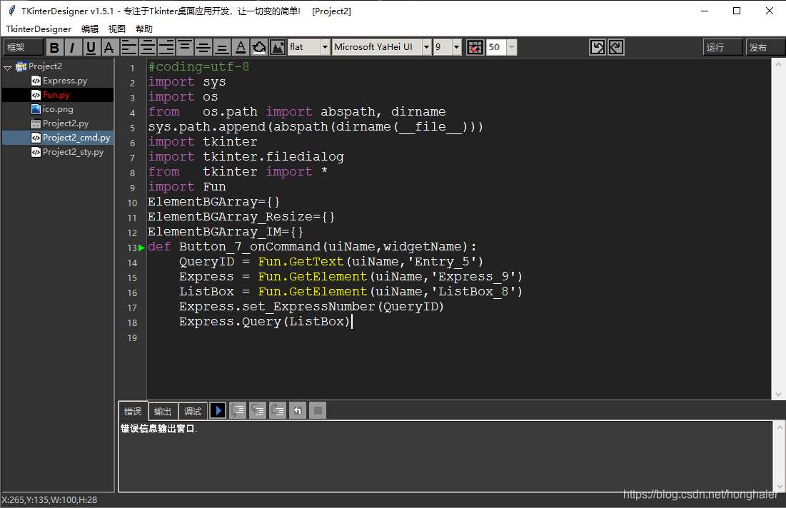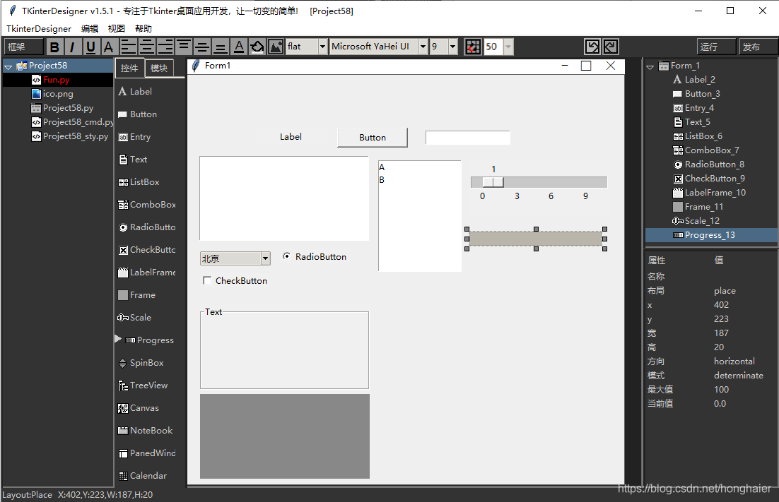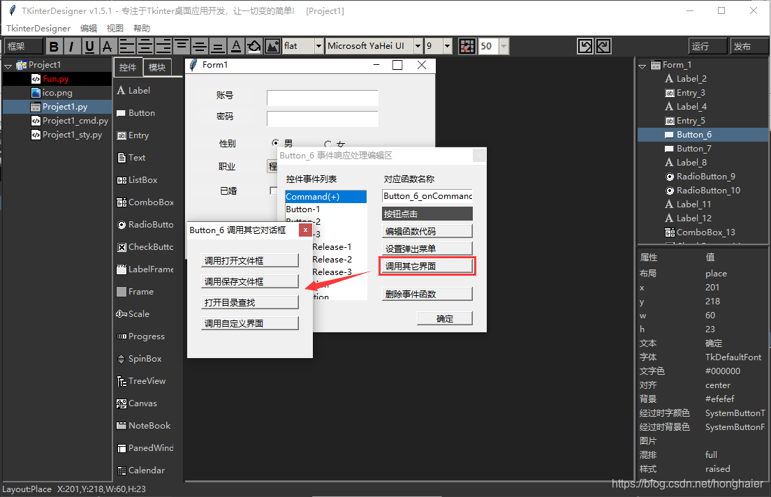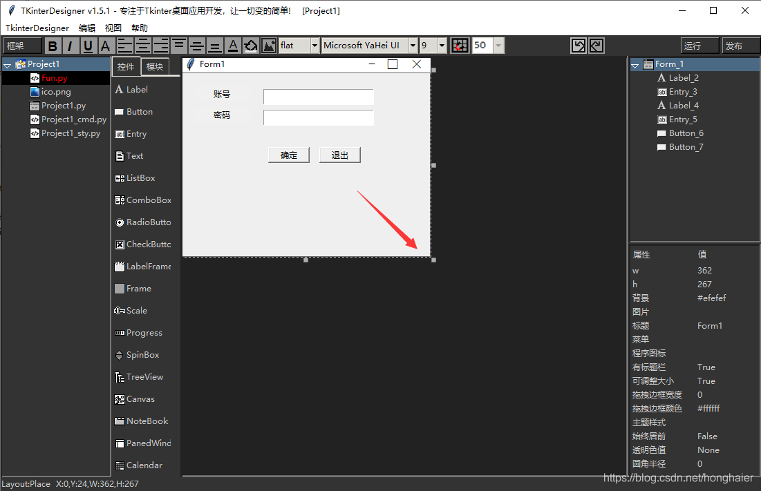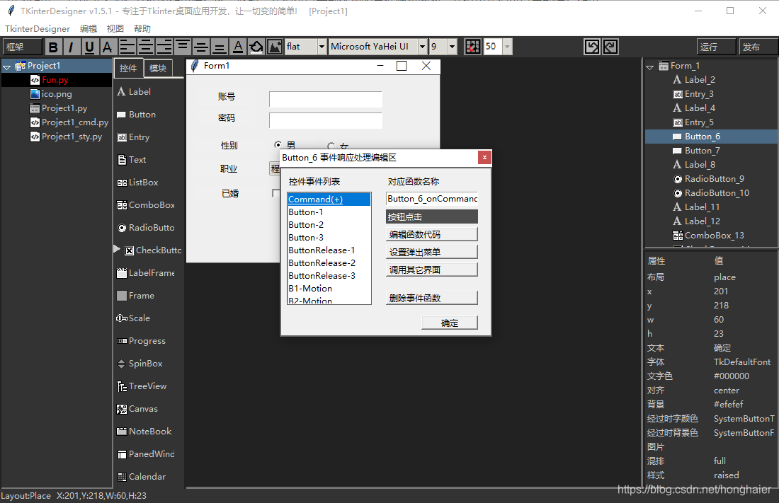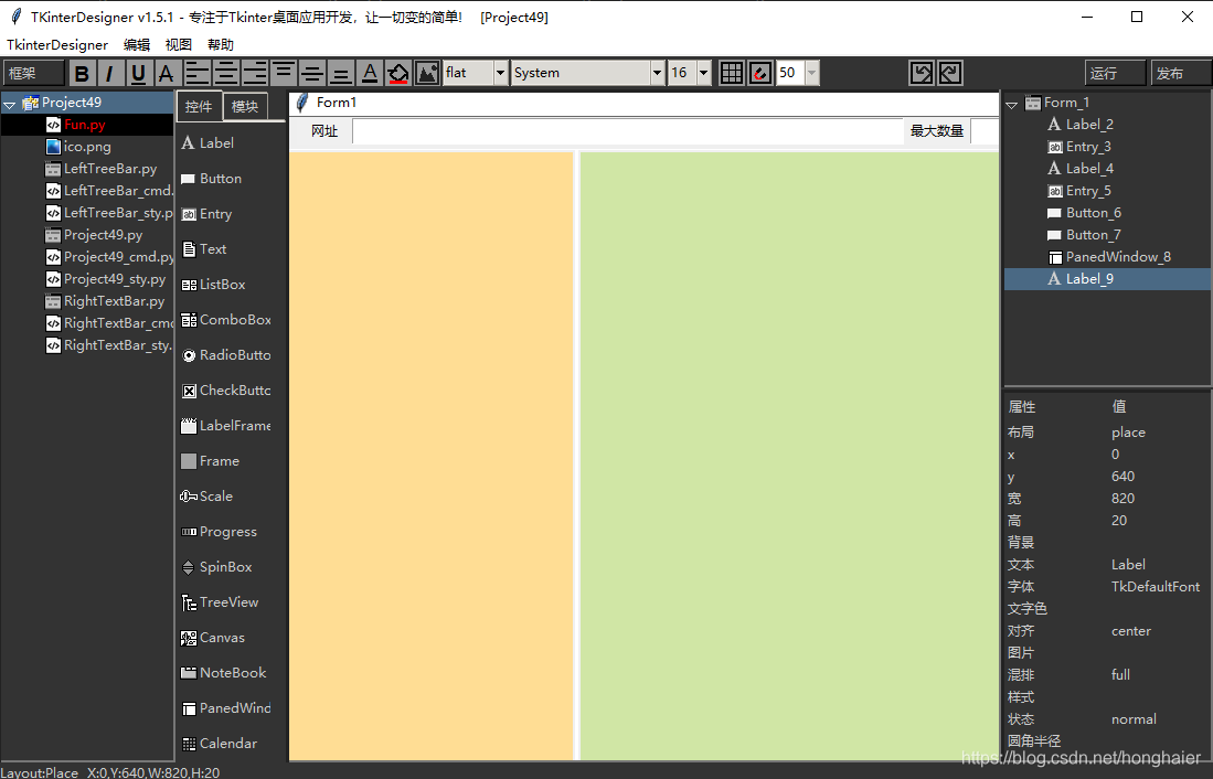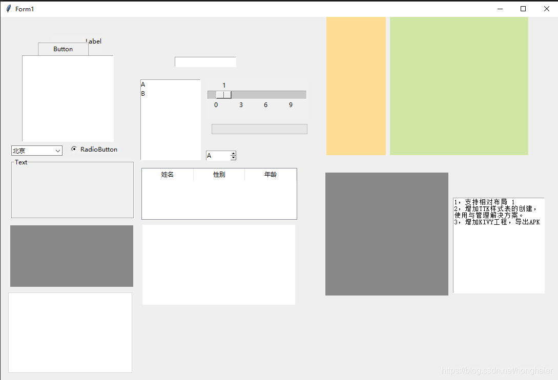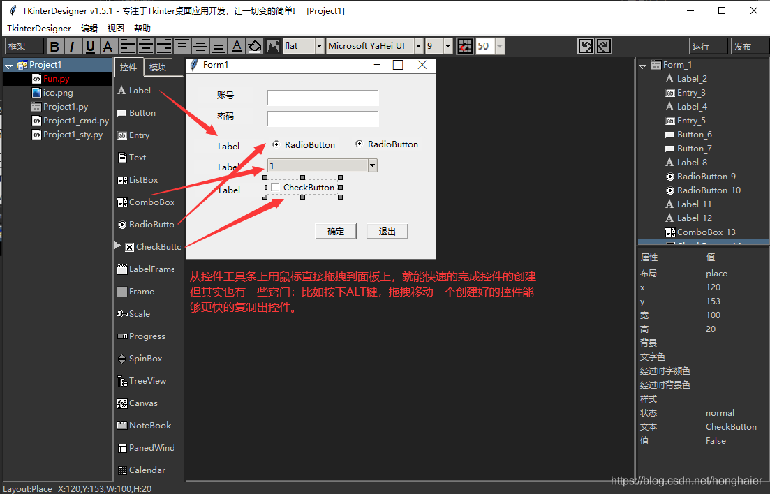 界面设计:通过拖拽方式所见即所得的设计Tkinter界面。