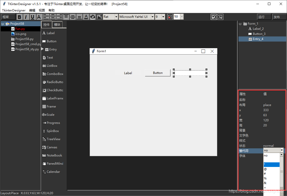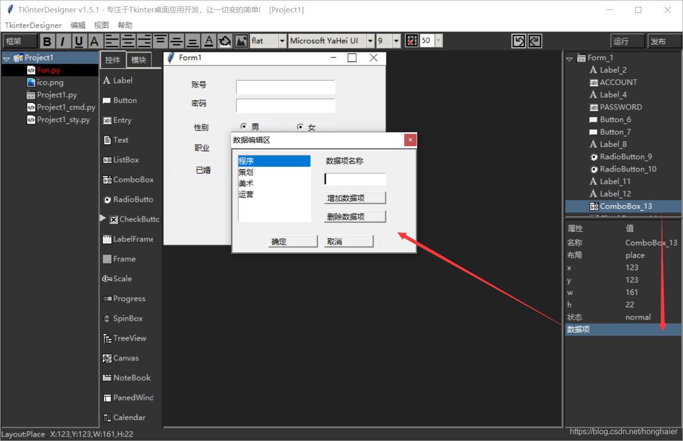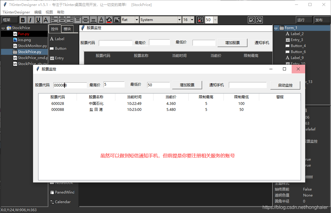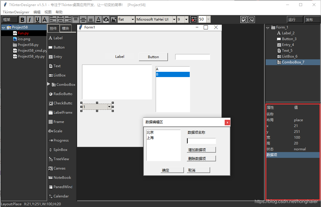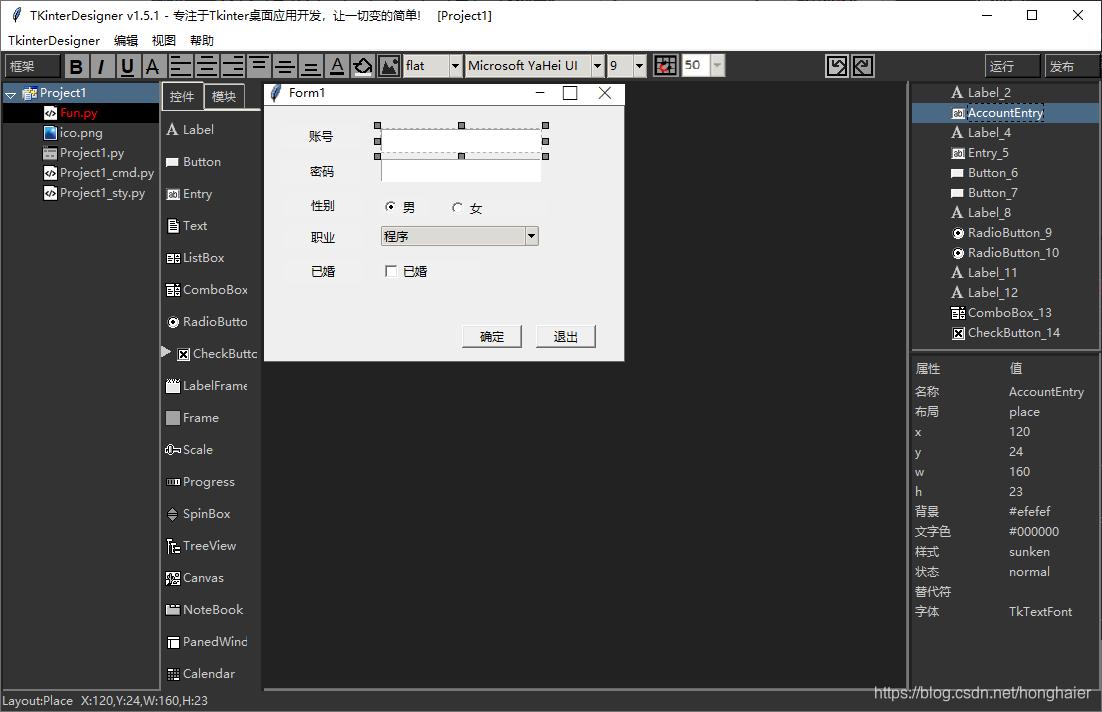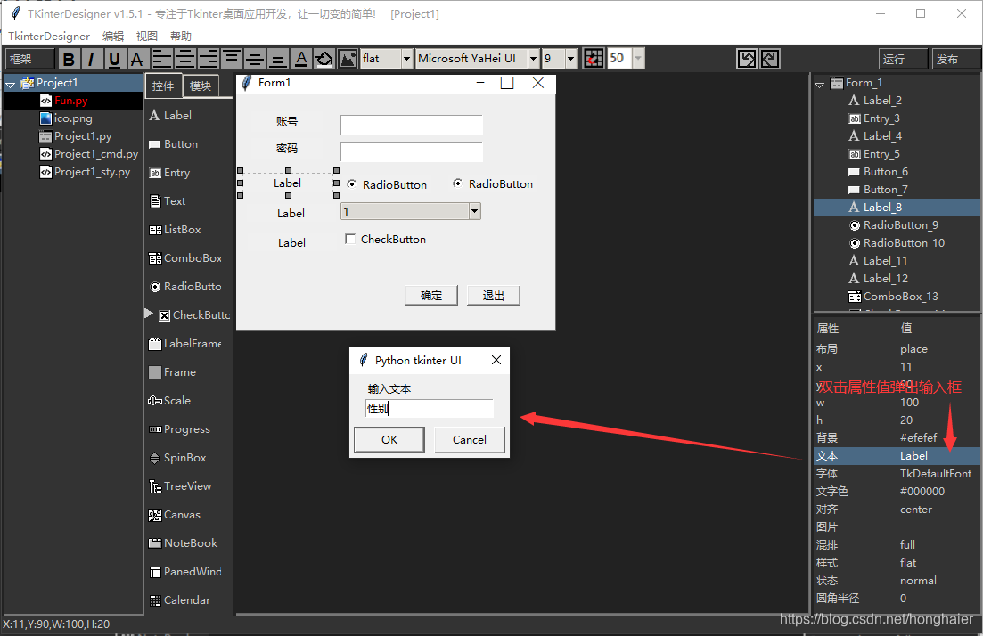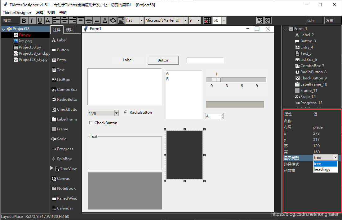 界面设计:通过拖拽方式所见即所得的设计Tkinter界面。