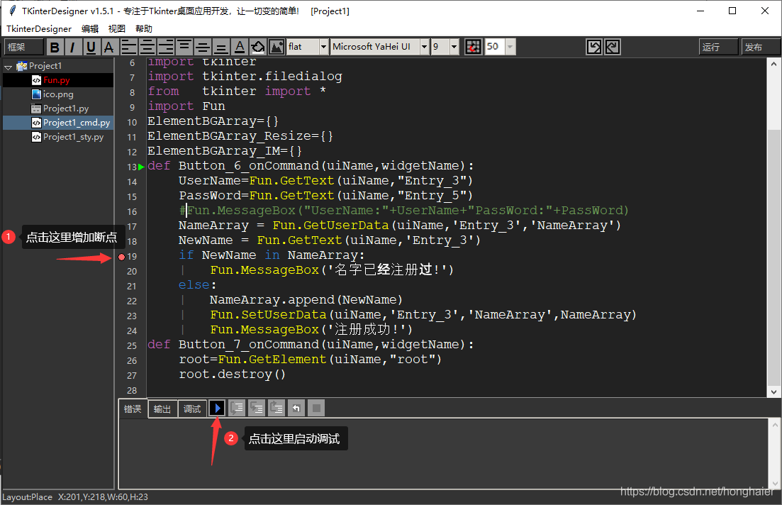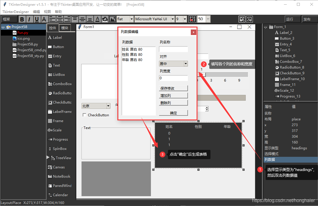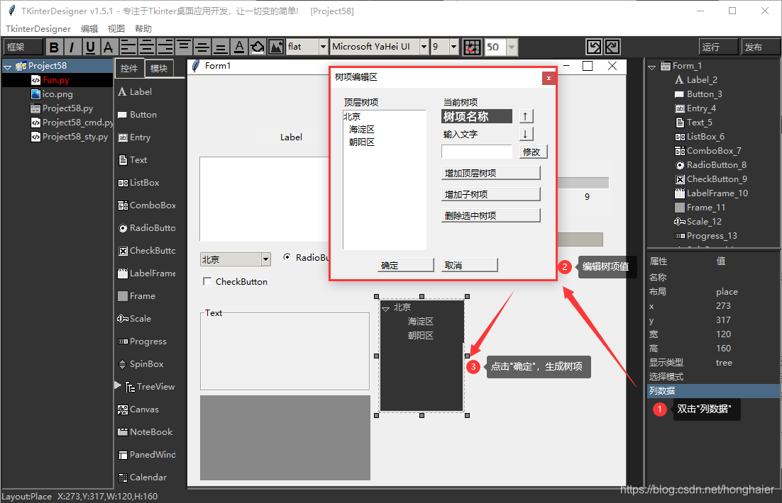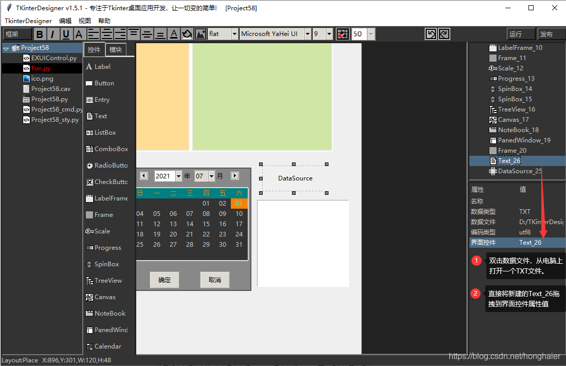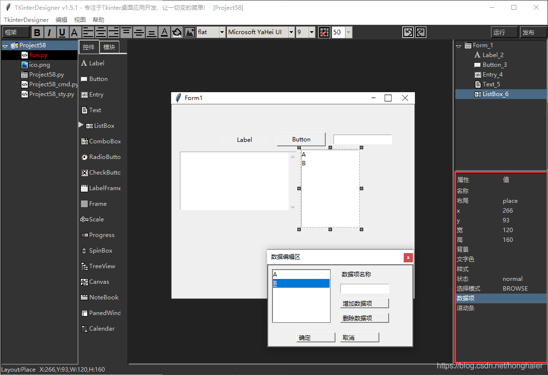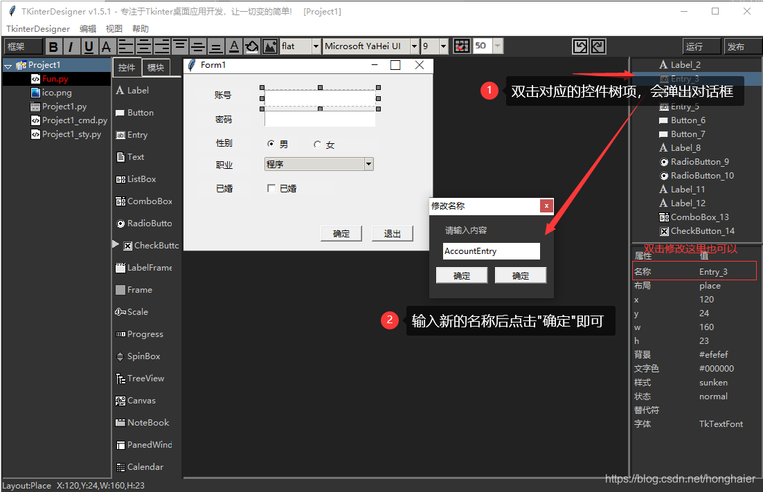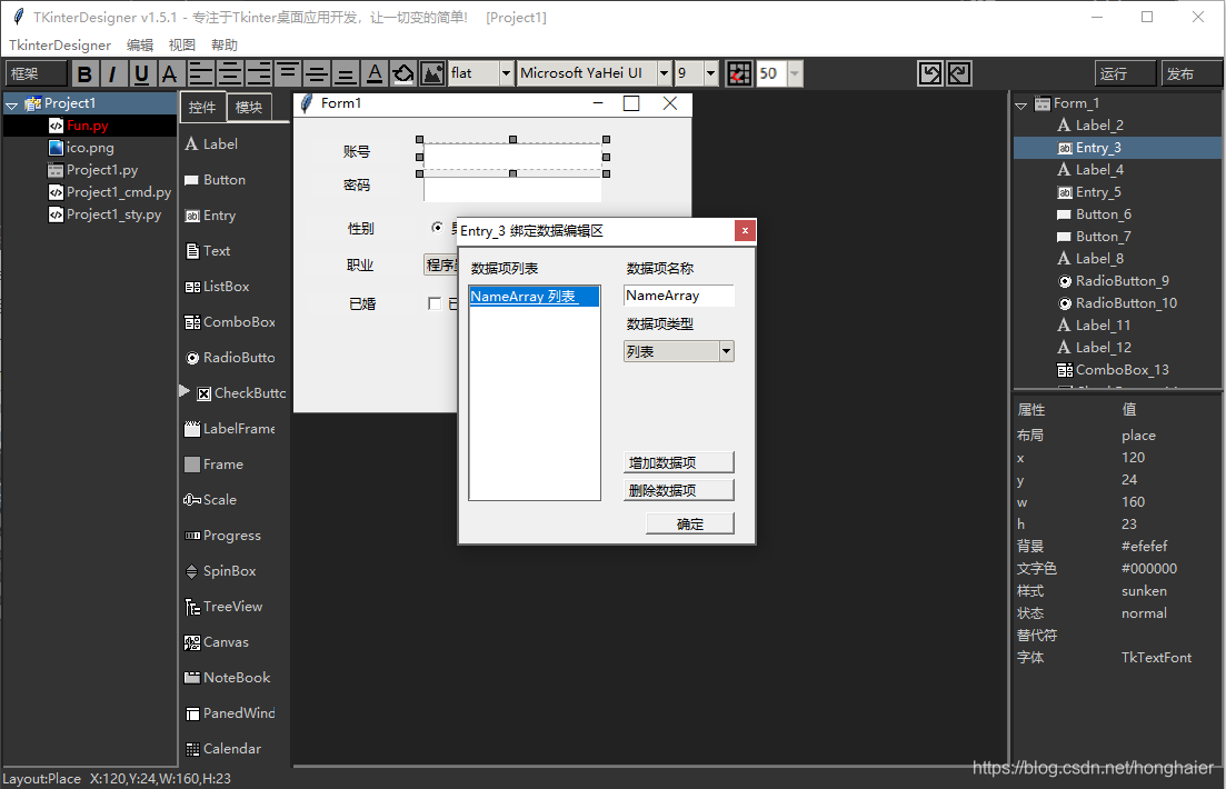 界面设计:通过拖拽方式所见即所得的设计Tkinter界面。