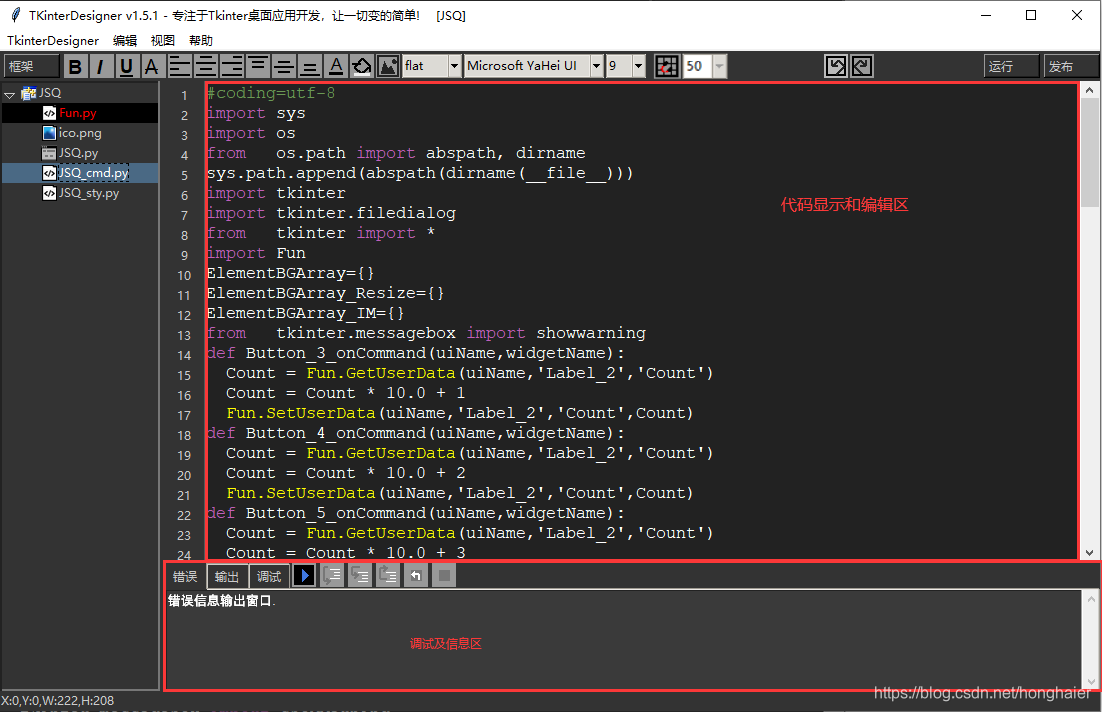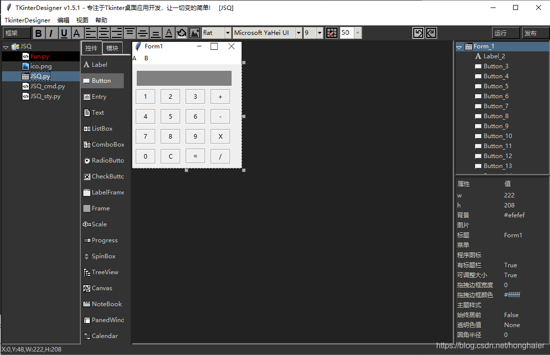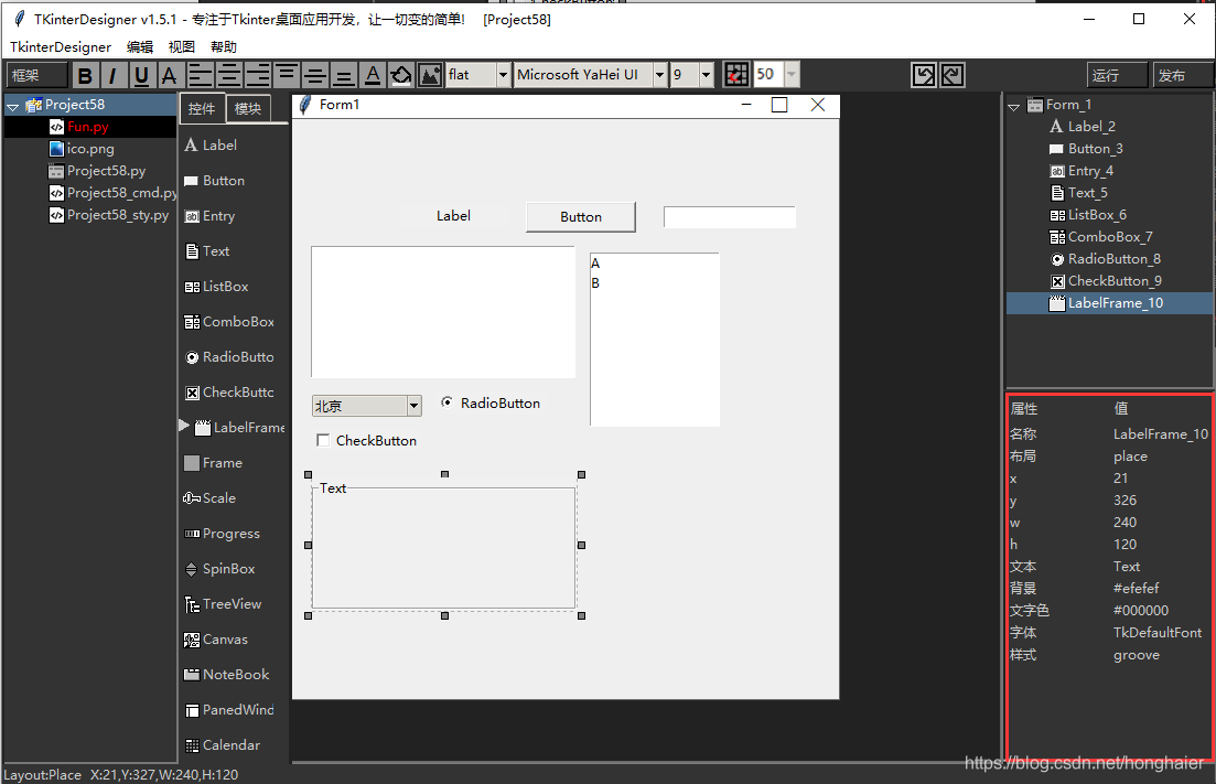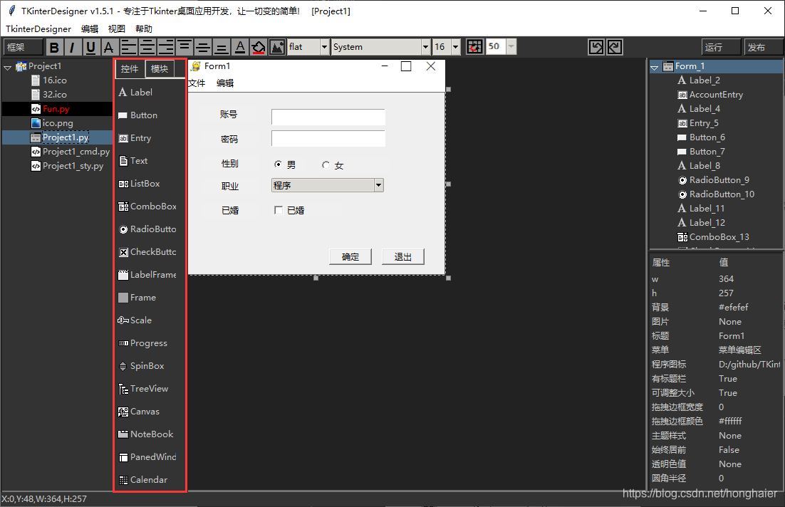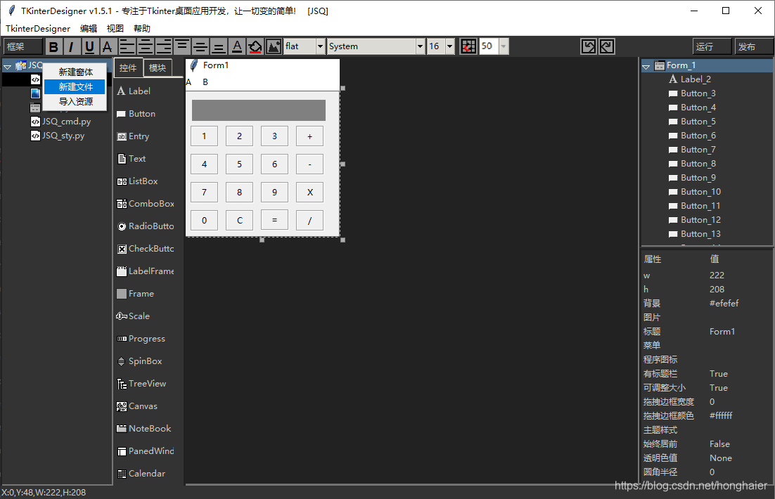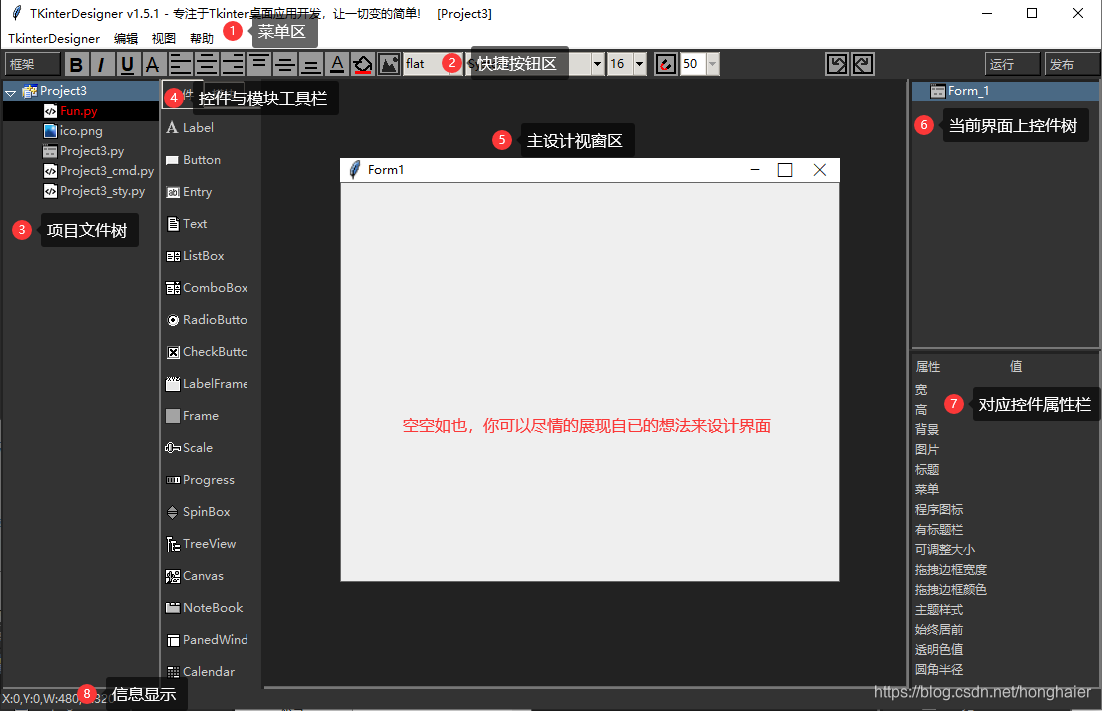 Tkinterdesigner v1.5.1 版本包括以下十项主要功能: