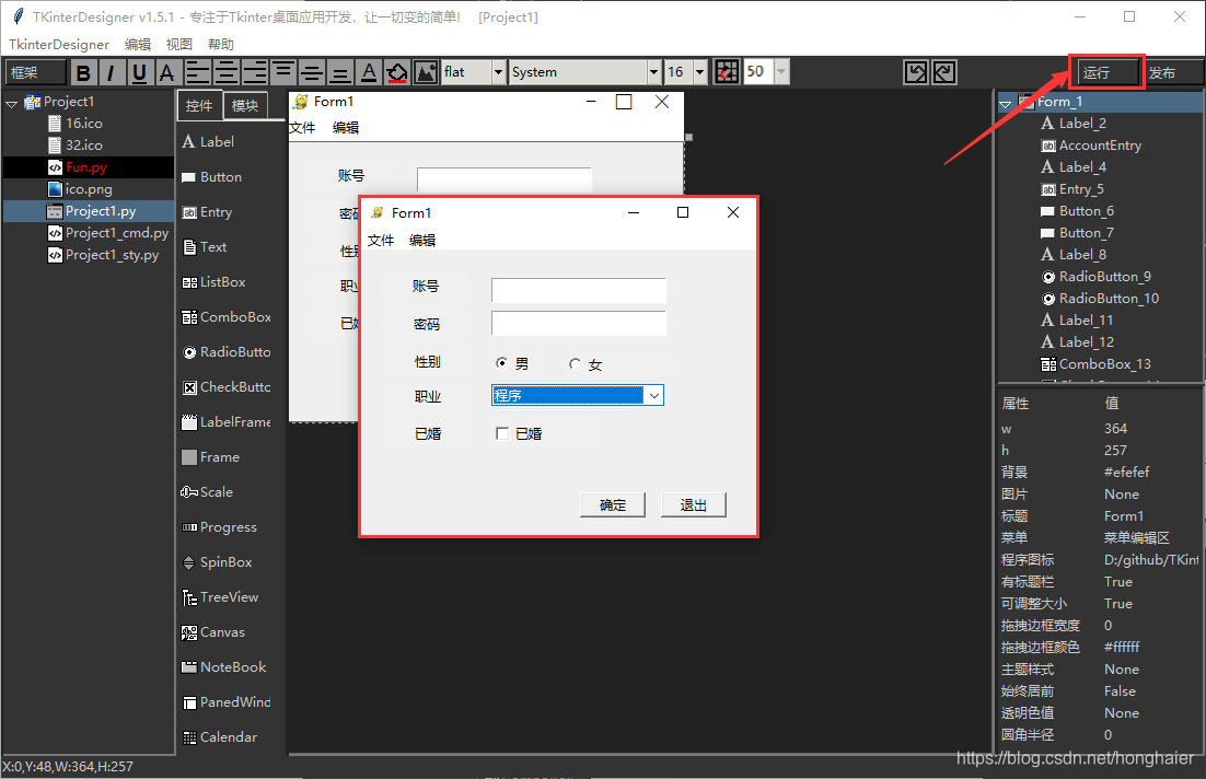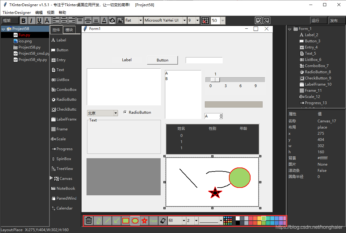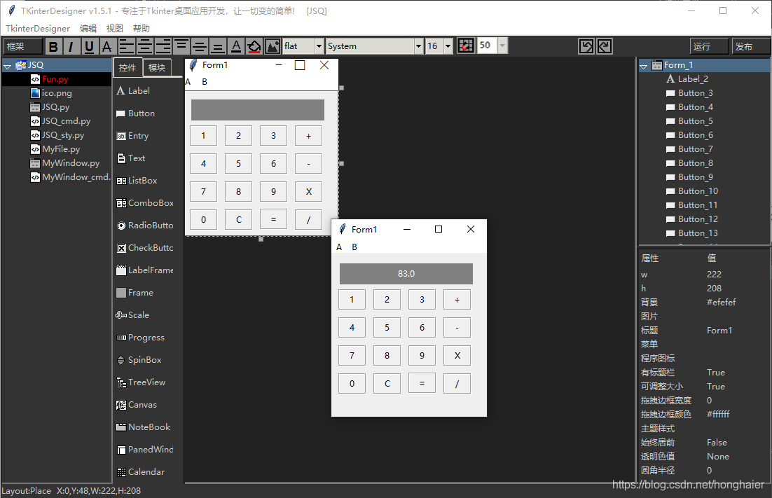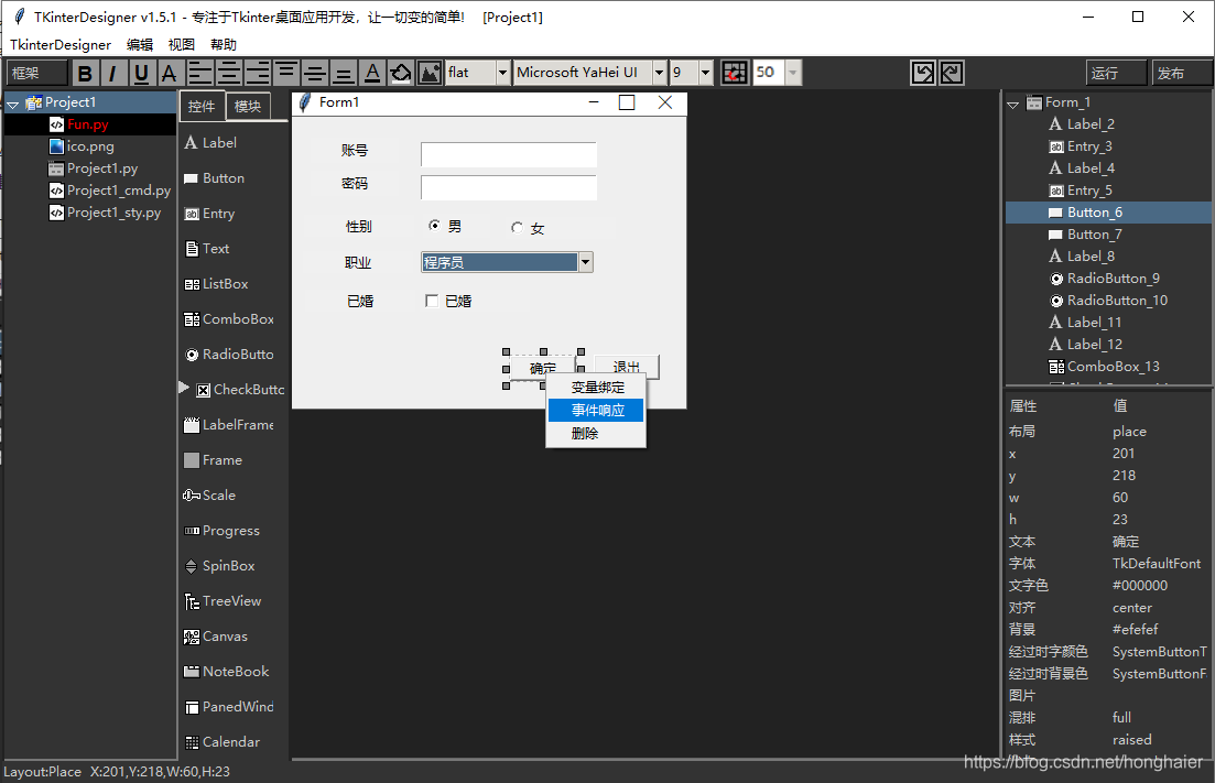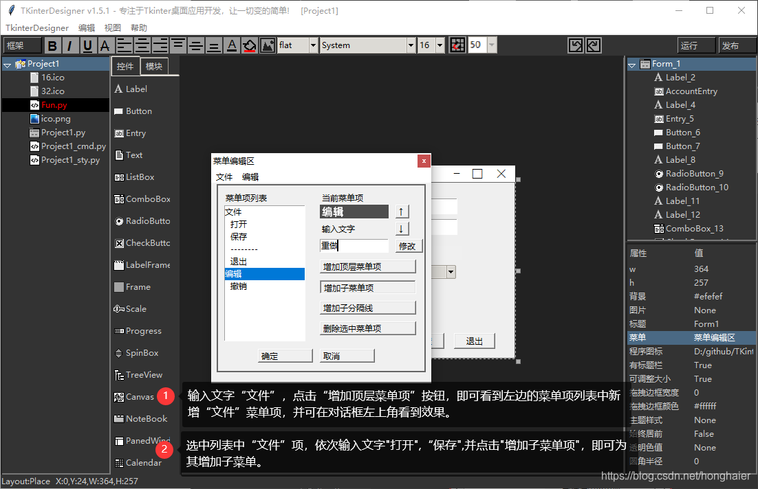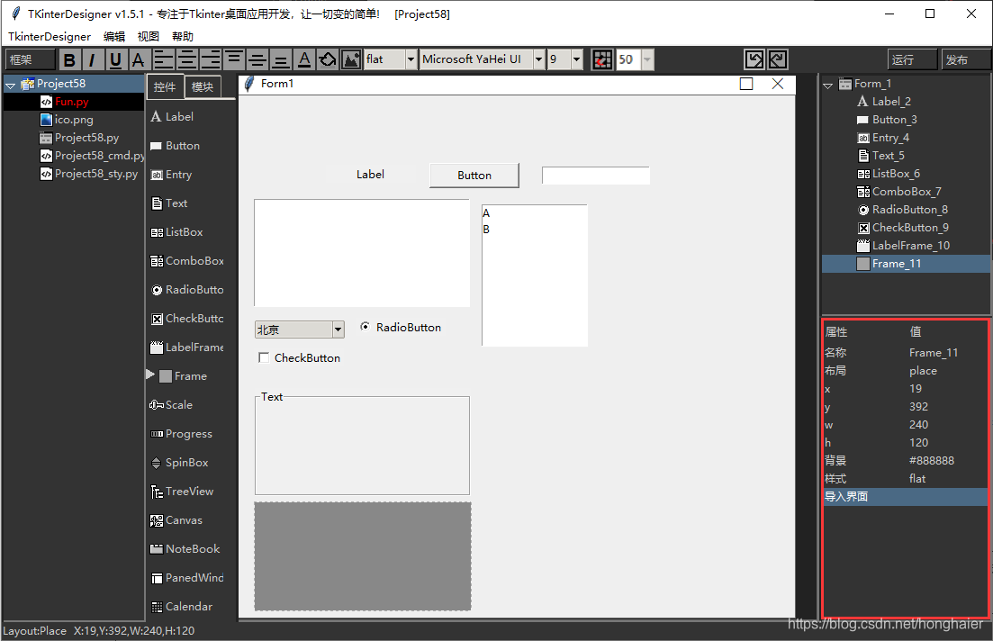Tkinterdesigner v1.5.1 版本包括以下十项主要功能: