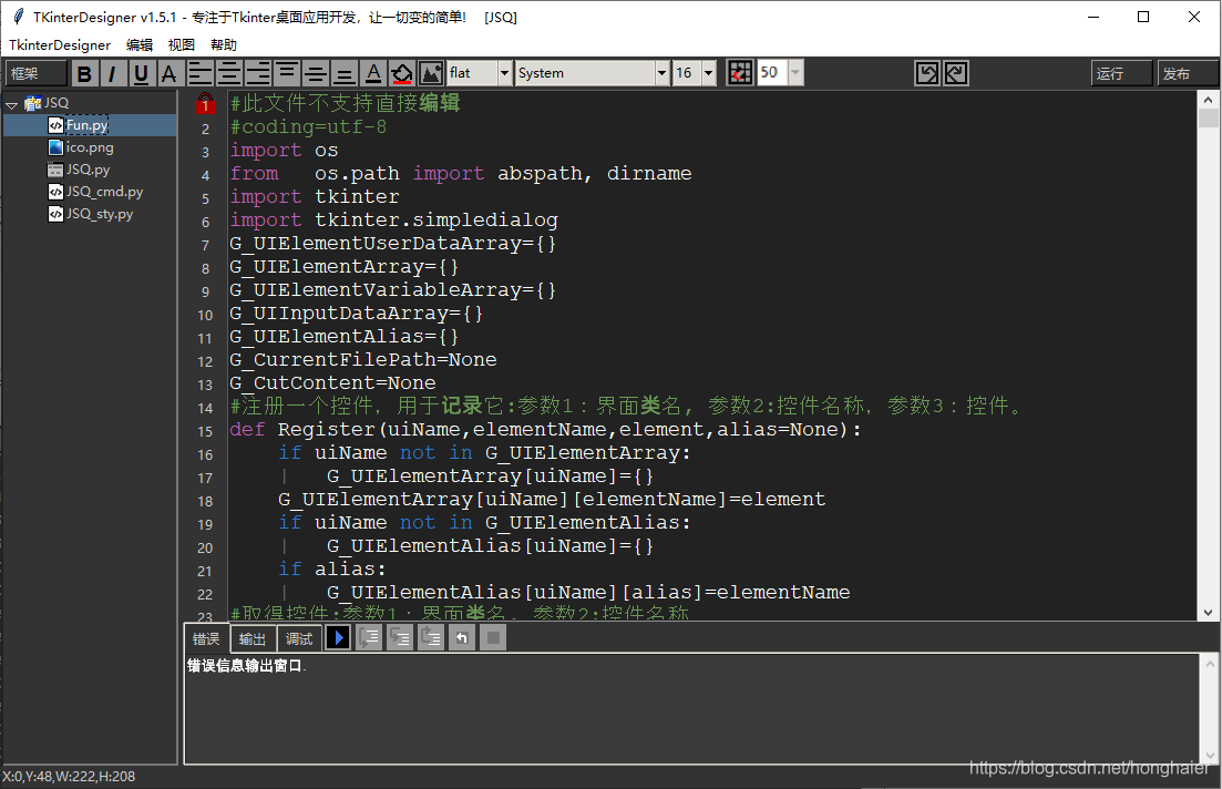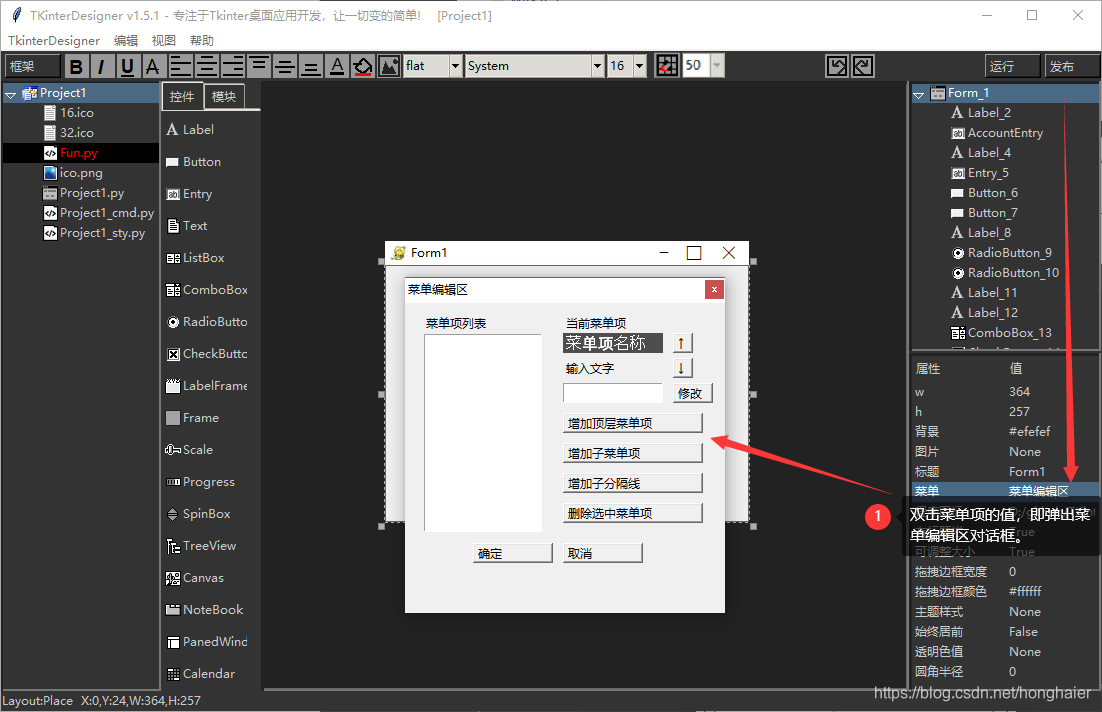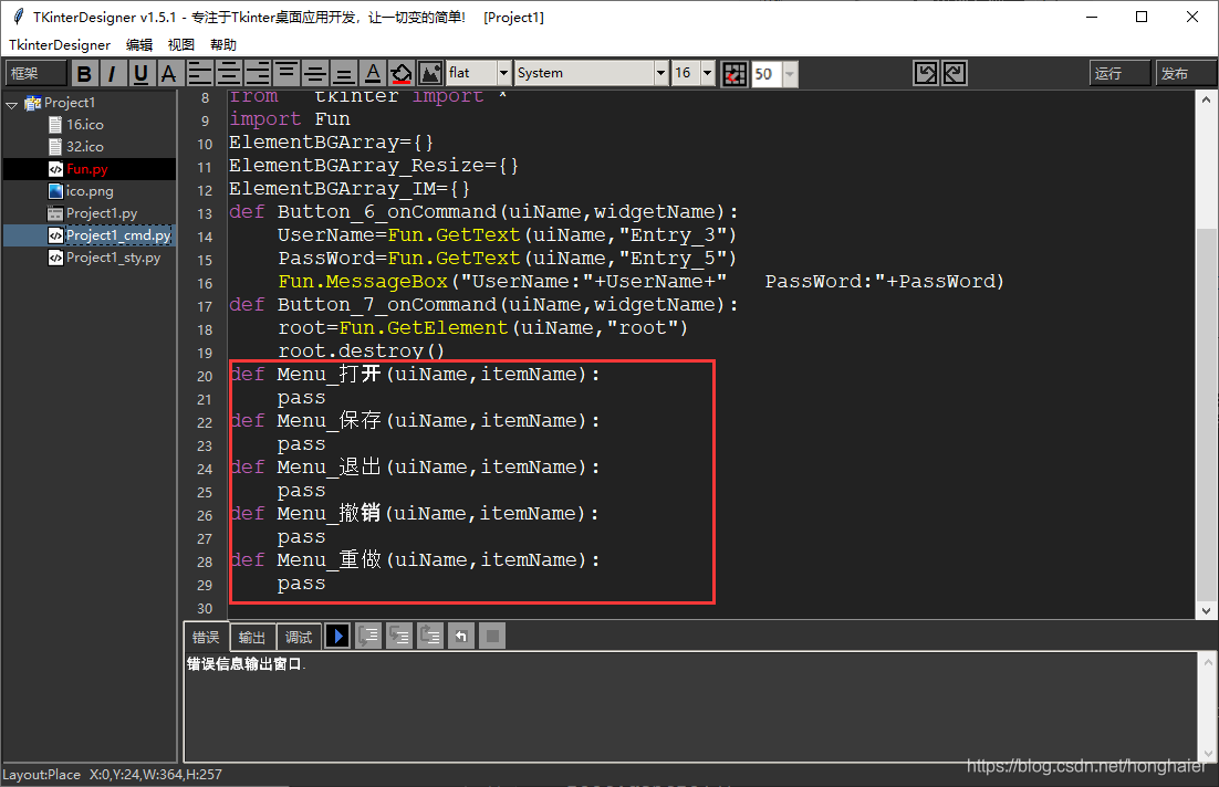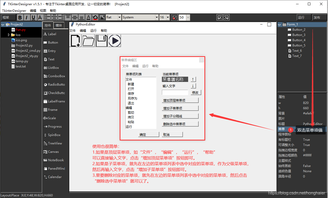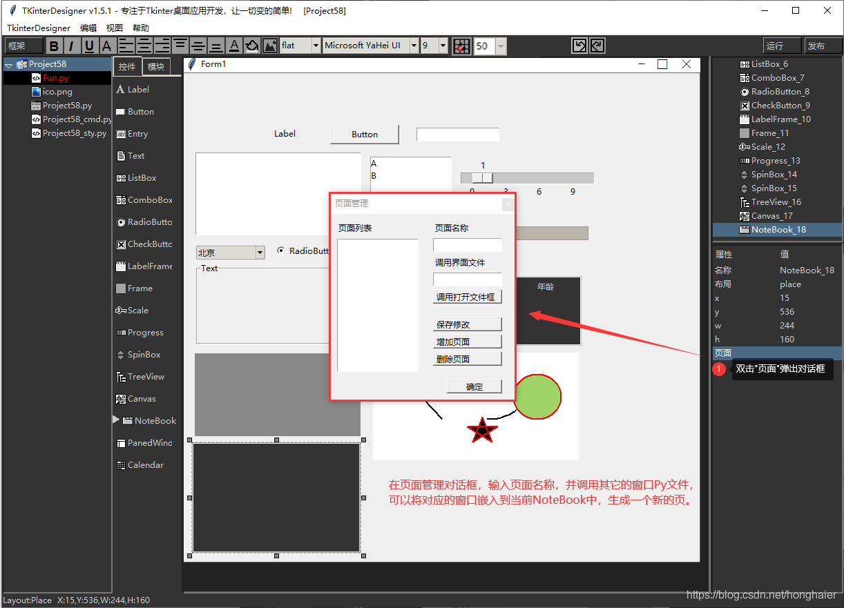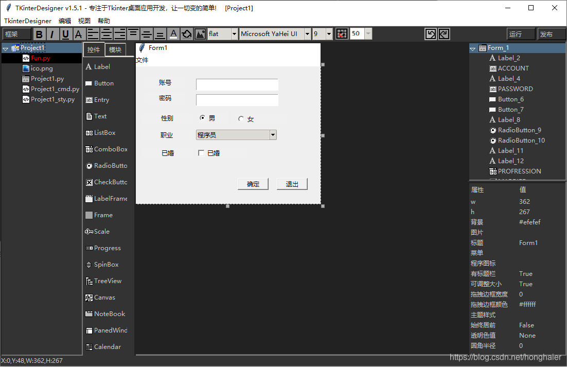 Tkinterdesigner v1.5.1 版本包括以下十项主要功能: