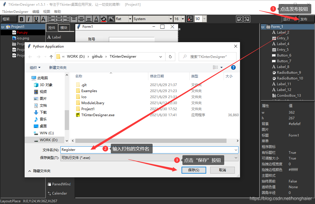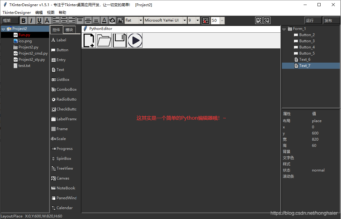 GitHub: https://github.com/honghaier-game/TKinterDesigner.git