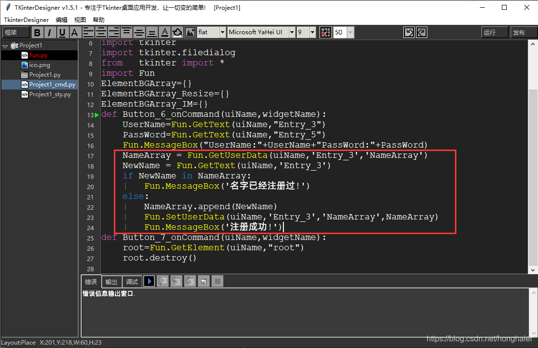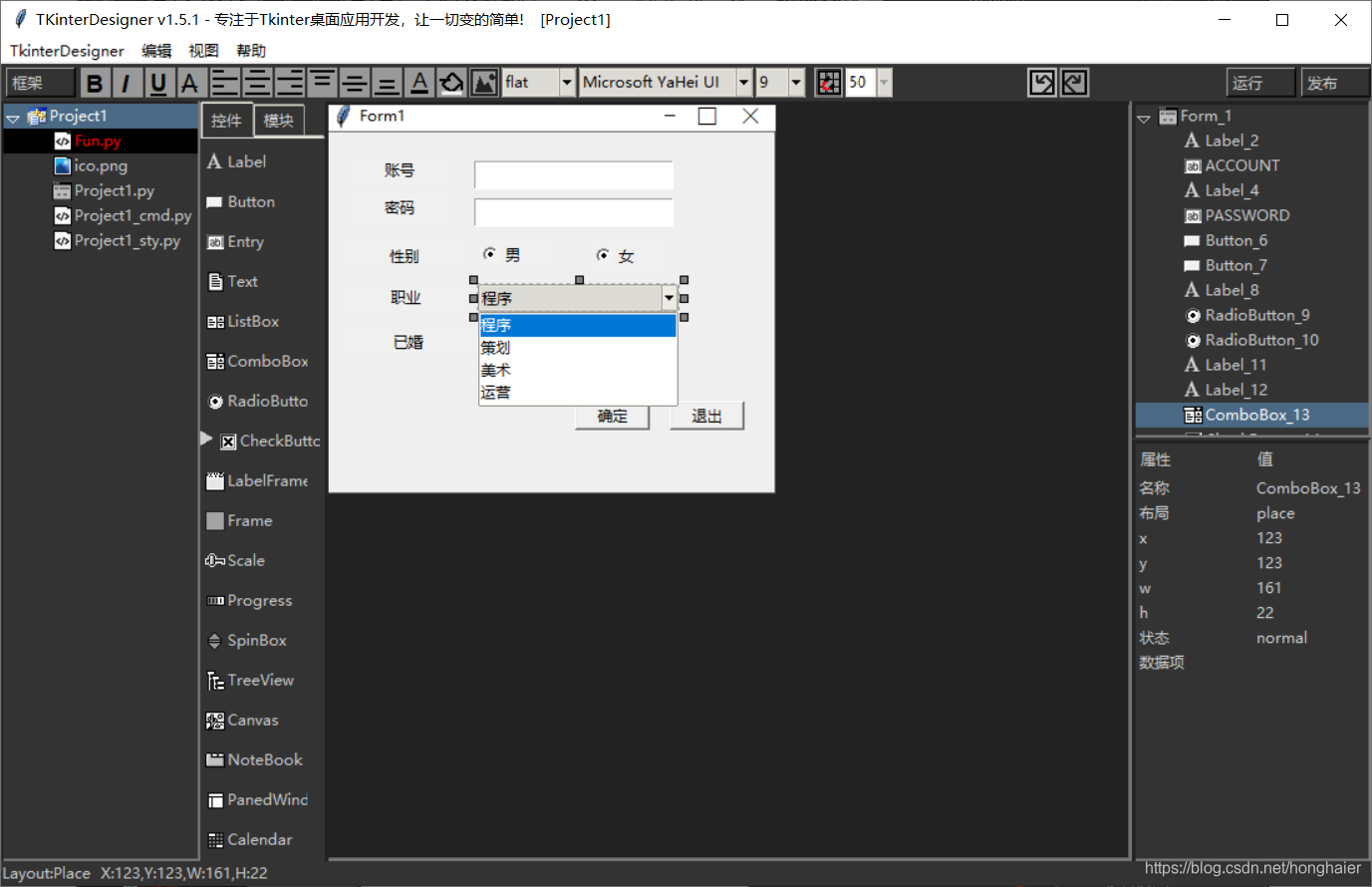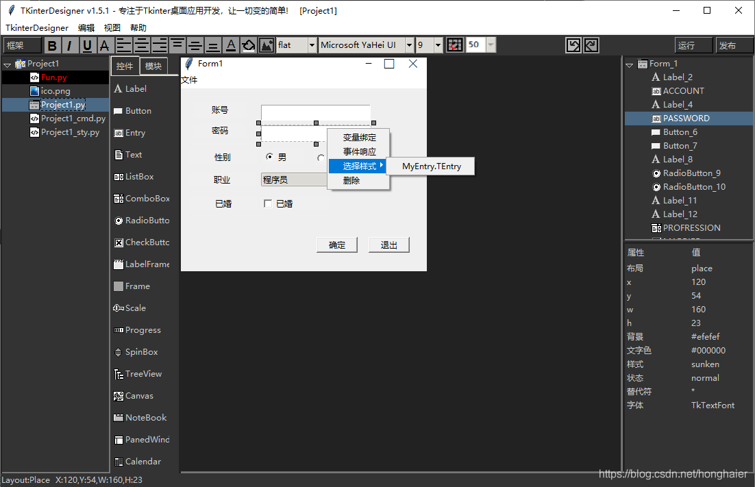 当然,如果你想自已去修改自已的样式,也可以在sty.py中制作,比如我们再次打开之前创建的那个注册小程序项目。