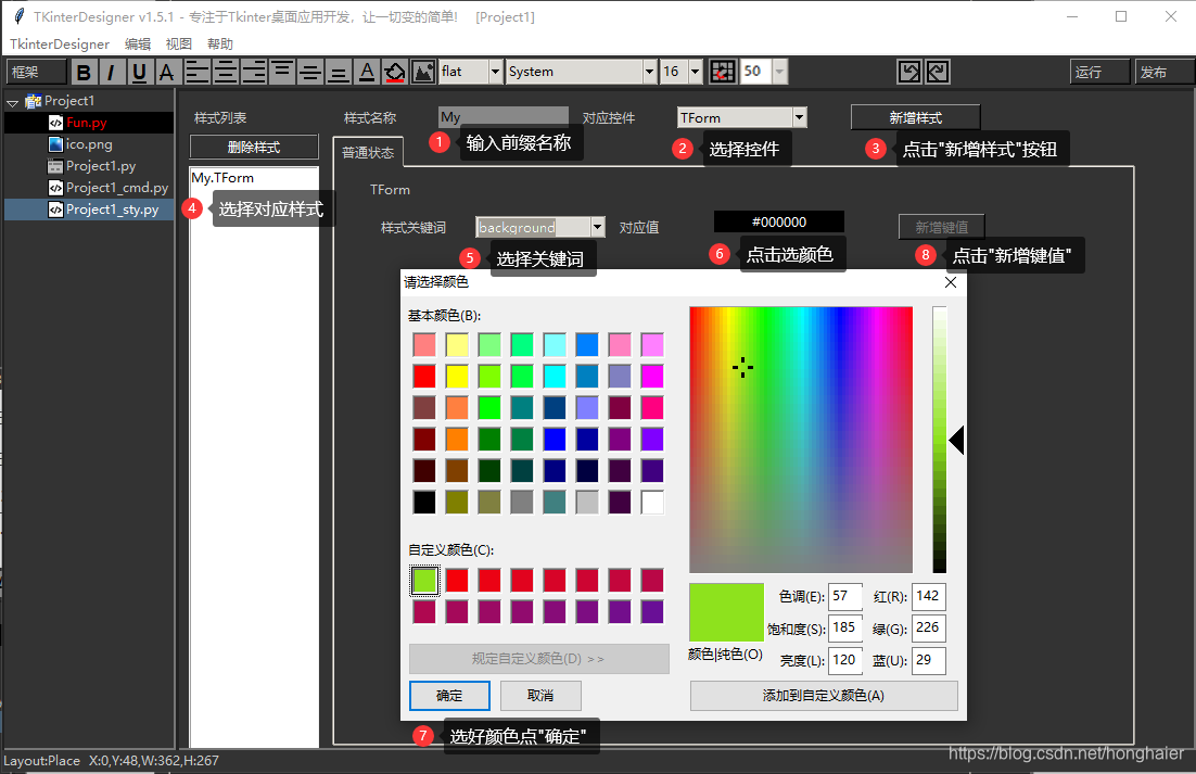 点击左边的“Project1_sty.py",进入到样式编辑器里。