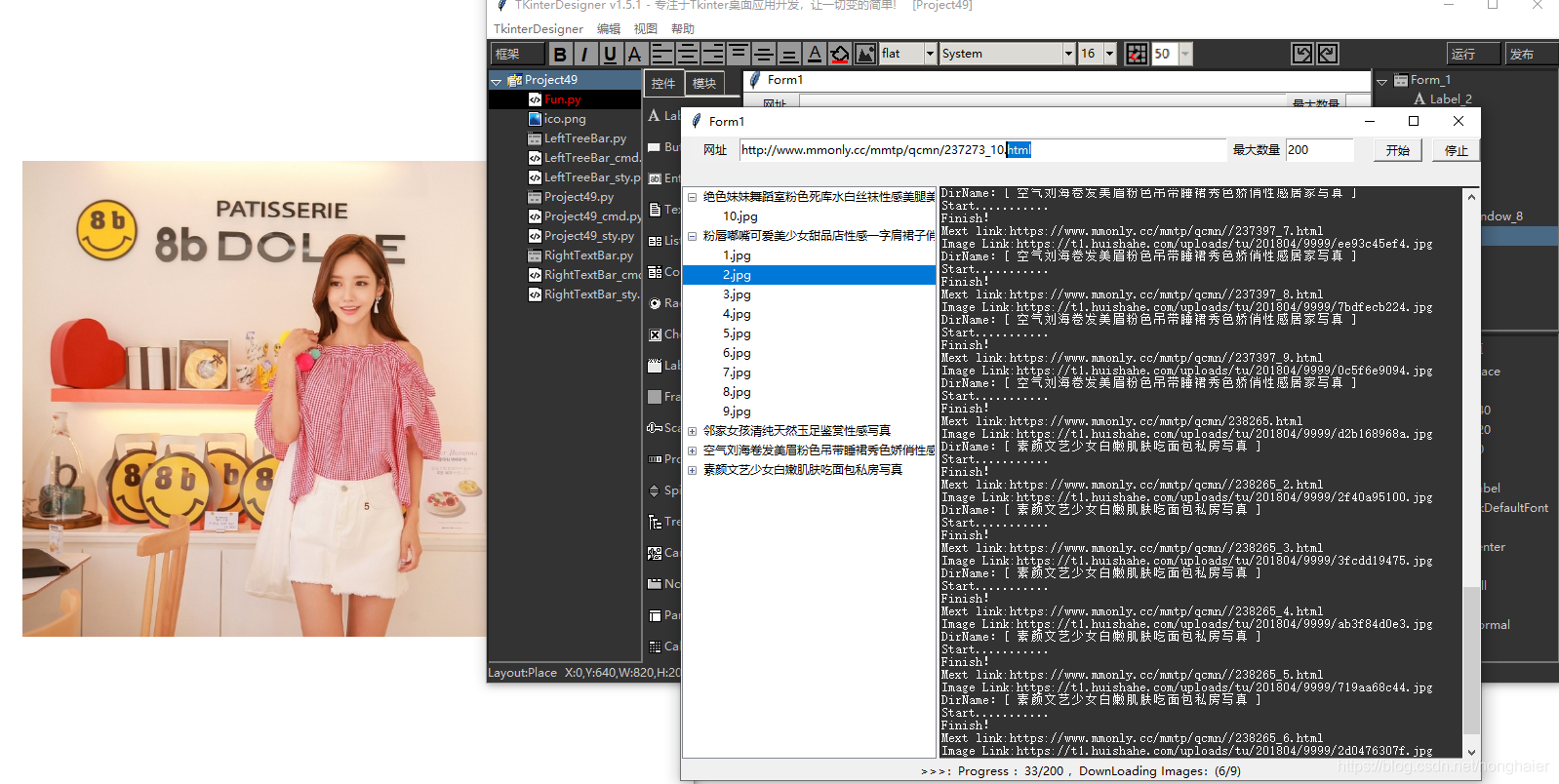 这些实例都是使用TKinterDesigner设计开发的,它让我们感到由衷的自豪,因为整个过程中,我们没有再为界面设计和事件处理花费多少时间,只把精力放在核心功能类上即可快速完成项目的开发。后面我们会加入更多的实例工程,以帮助大家更好的学习和掌握TKinterDesigner。
