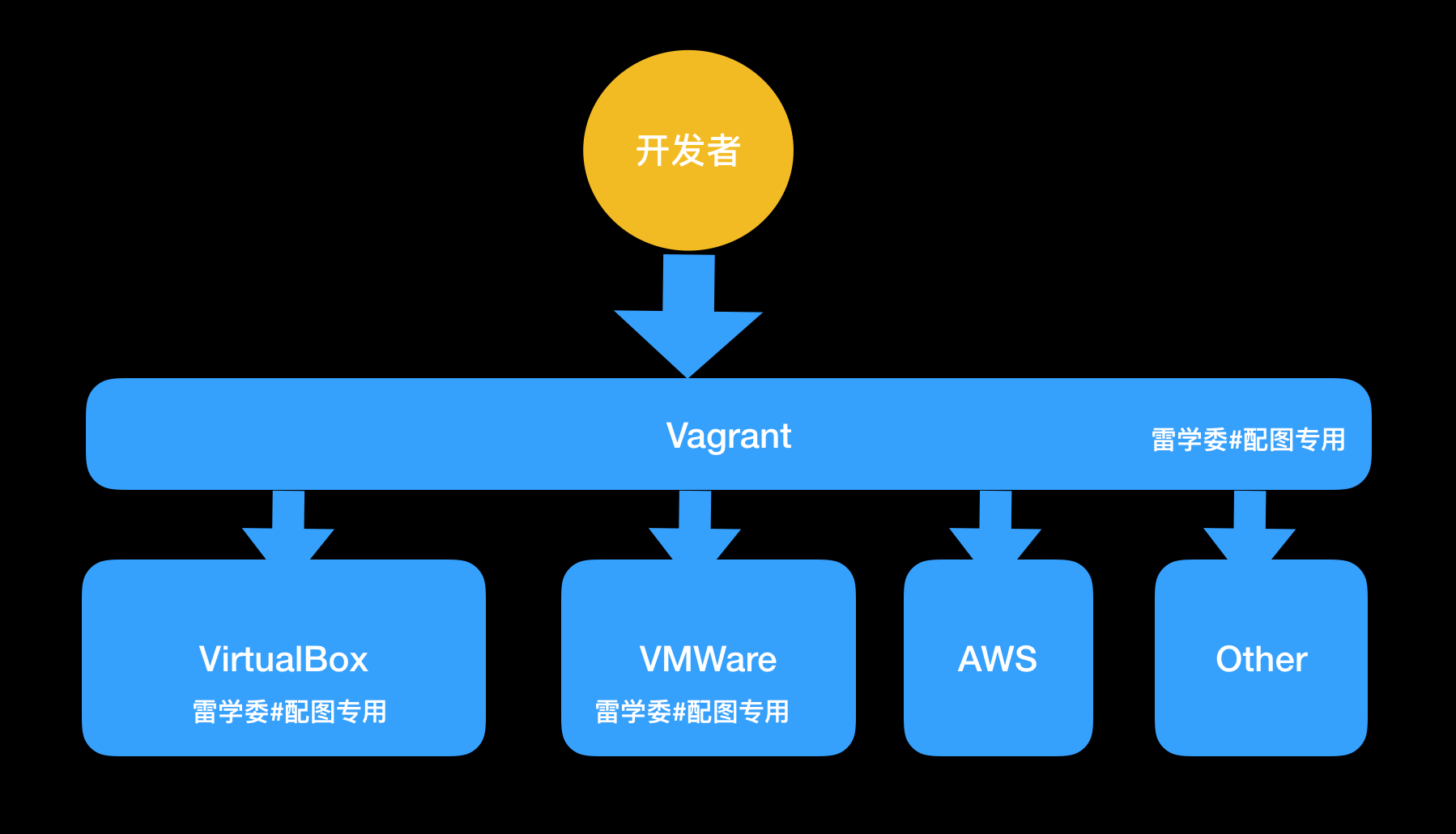 如下图,Vagrant凌驾在其他虚拟机之上(当前也能操纵AWS亚马逊云)