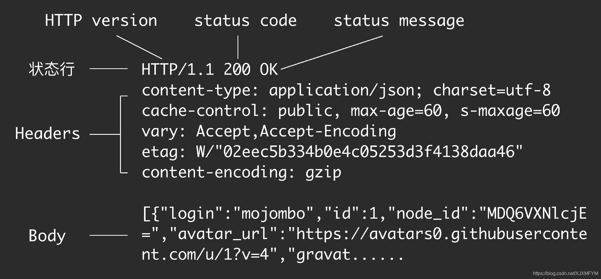 用户输入地址后回车或点击链接 -> 浏览器拼装 HTTP 报文并发送请求给服务器 -> 服务器处理请求后发送响应报文给浏览器 -> 浏览器解析响应报文并使用渲染引擎显示到界面