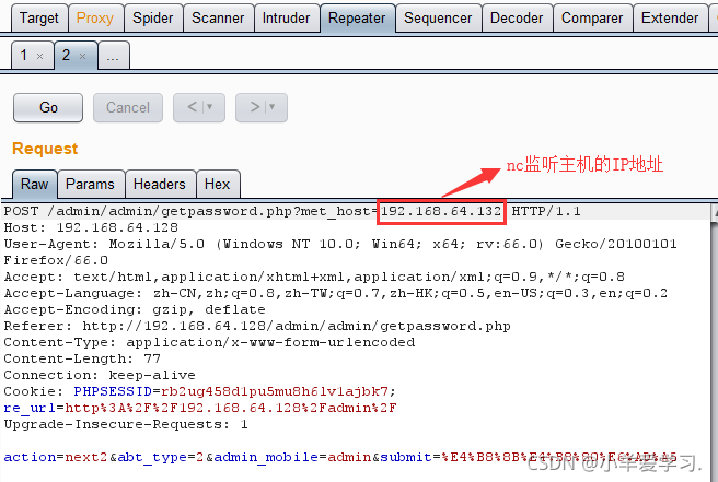 POST /admin/admin/getpassword.php?met_host=IP地址 HTTP/1.1
