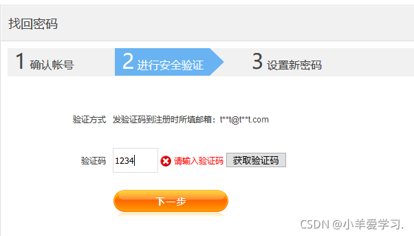 4.进入第二步“进行安全验证”随意填写一个验证码,例如1234等等,确保输入后点击