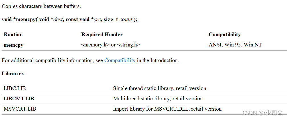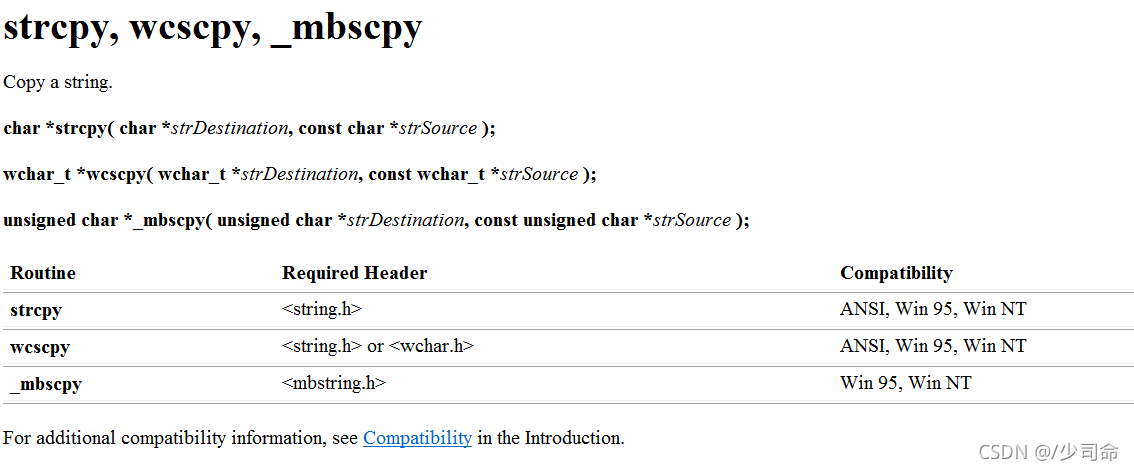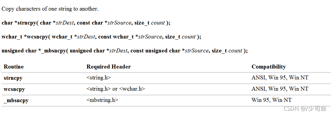 目标空间必须有足够的大,能容纳下源字符串的内容。