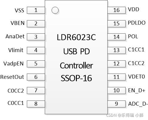 LDR6023C SSOP16 是乐得瑞科技针对 USB Type-C 标准中的 Bridge 设备而开发的双 USB-C DRP接口 USB PD 通信芯片。具备 Power Negotiation 数据包透传功能,切换 Data Role 功能,以及通过 VDM 协商让智能设备进入 ALT MODE 的功能,并针对各大手机品牌的 USB-C 接口兼容性进行了特别优化,适合于手机音频转接器应用场景。