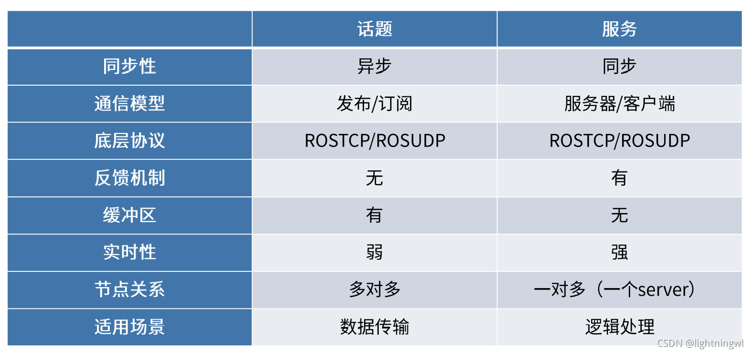 话题通信和服务通信的区别: