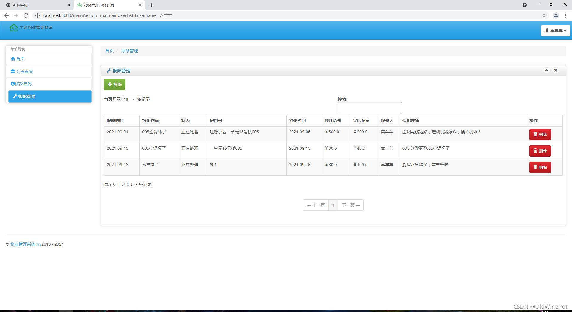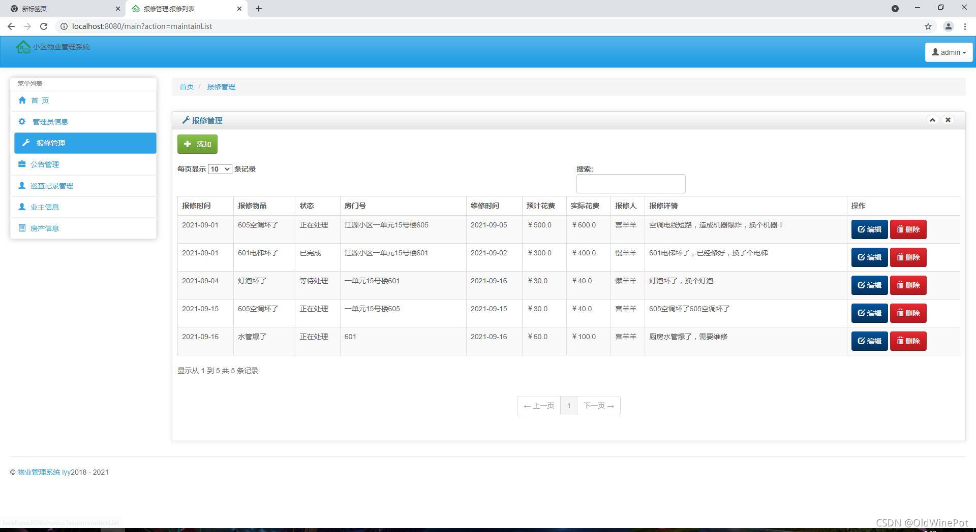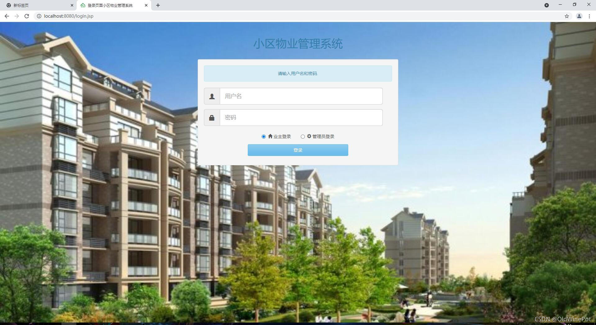 servlet+jdbc+jsp实现的小区物业管理系统,该系统有两个角色一个是管理员一个是业主,