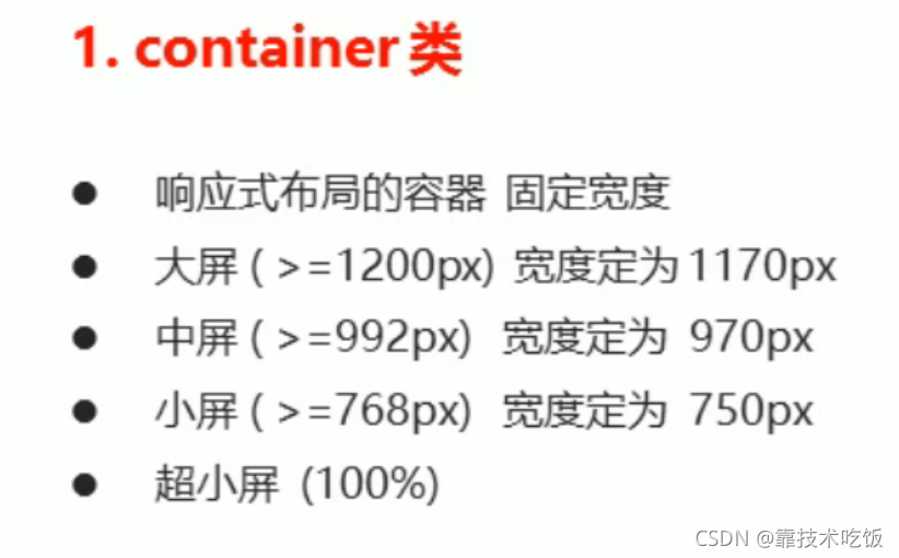 Bootstrap 里面的 container 宽度是固定的,但是再不同屏幕下,container 的宽度不同,我们再把 container 划分为12等份。
