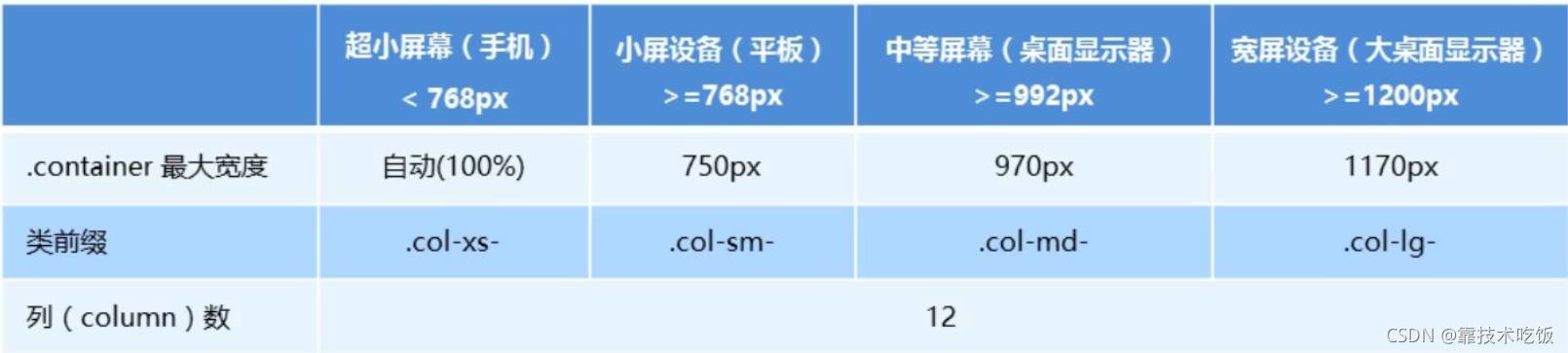 - xs-extra small:超小;sm-small:小;md-medium:中等;lg-large:大;