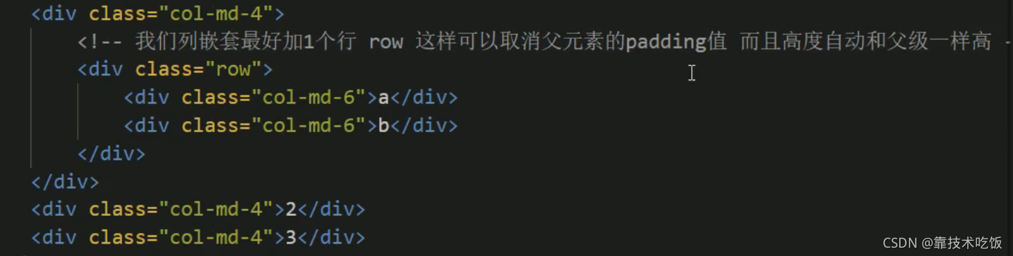栅格系统内置的栅格系统将内容再次嵌套。简单理解就是一个列内再分成若干份小列。我们可以通过添加一个新的 .row 元素和一系列 .col-sm-* 元素到已经存在的 .col-sm-* 元素内。