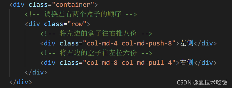 通过使用 .col-md-push-* (推)和 .col-md-pull-* (拉)类就可以很容易的改变列(column)的顺序。