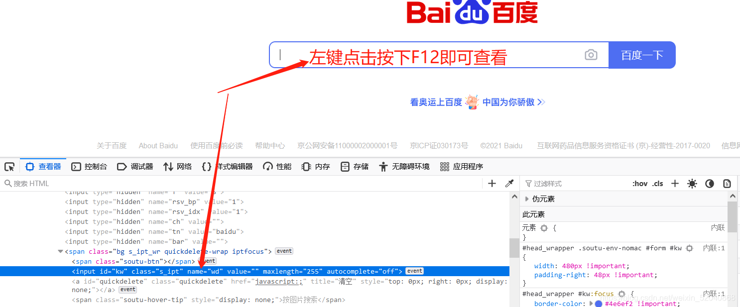 上面我们用百度的例子定位了输入框,那么我们这回来定位搜索按钮并点击它。