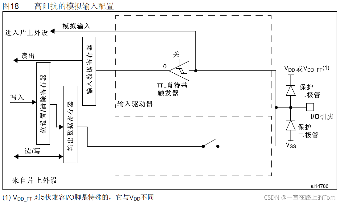 下图示出了I/O端口位的高阻抗模拟输入配置: