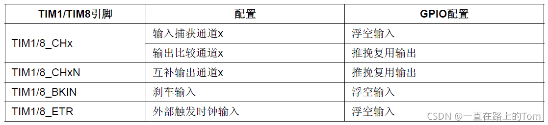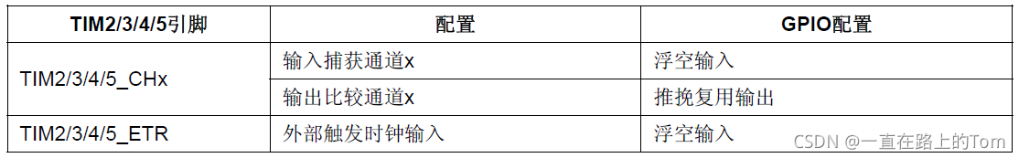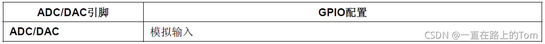 除了 ADC 和 DAC 要将 IO 配置为模拟通道之外其他外设功能一律 要配置为复用功能模式。