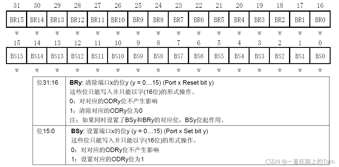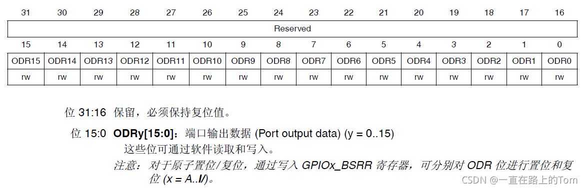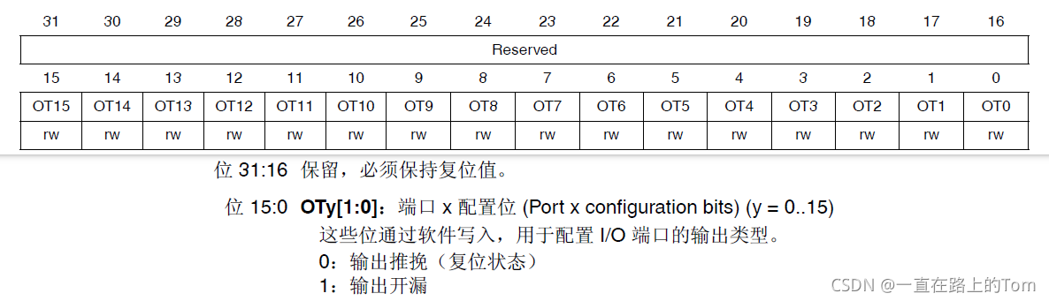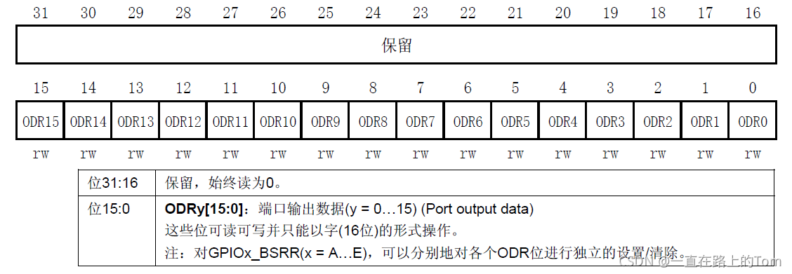 ● 在推挽式模式时,对输出数据寄存器的读访问得到最后一次写的值。