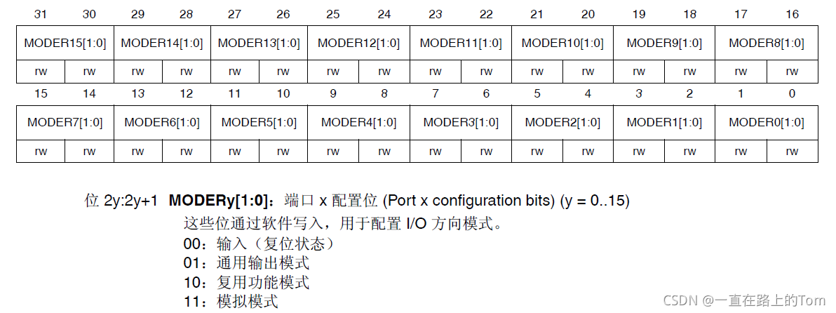 引脚的模式共有四种,分别为输入,输出,复用,和模拟模式