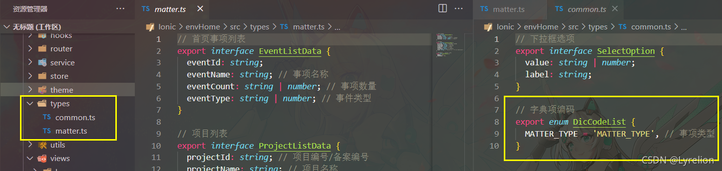 types 文件夹,定义项目中需要的 typescript 类型- 还可以加 enums 文件夹,定义项目中需要的 枚举enum 类型