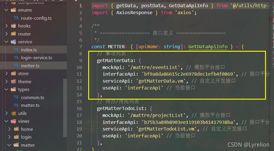 在 utils 文件夹中,包含 接口路径拼接 / axios设置 / 封装http请求 / 配置 token 等内容- 在 service 文件夹中,配置 具体业务的 http请求
