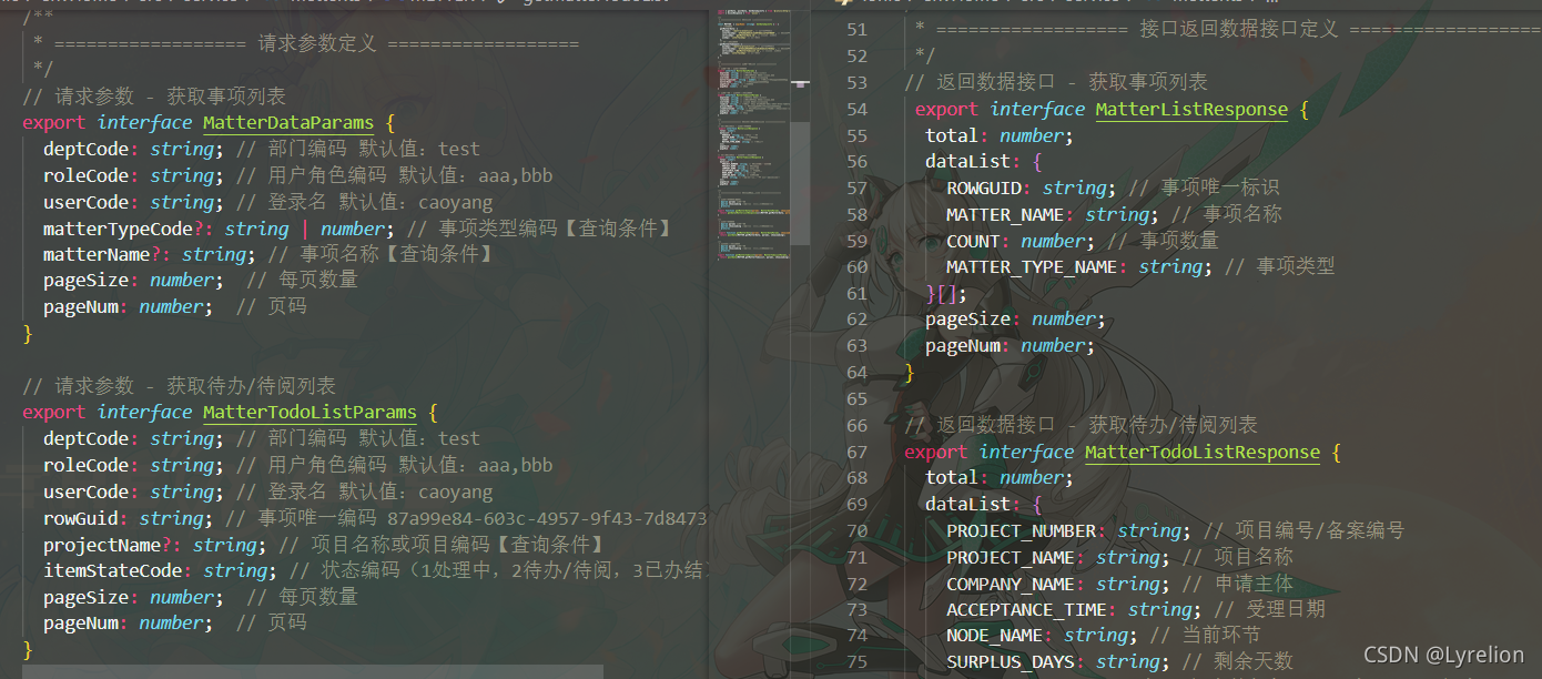 可以直接在 service 下的模块中,直接定义 接口所需参数类型 / 接口回复数据类型,也可以把这两个定义在 types 下的模块中