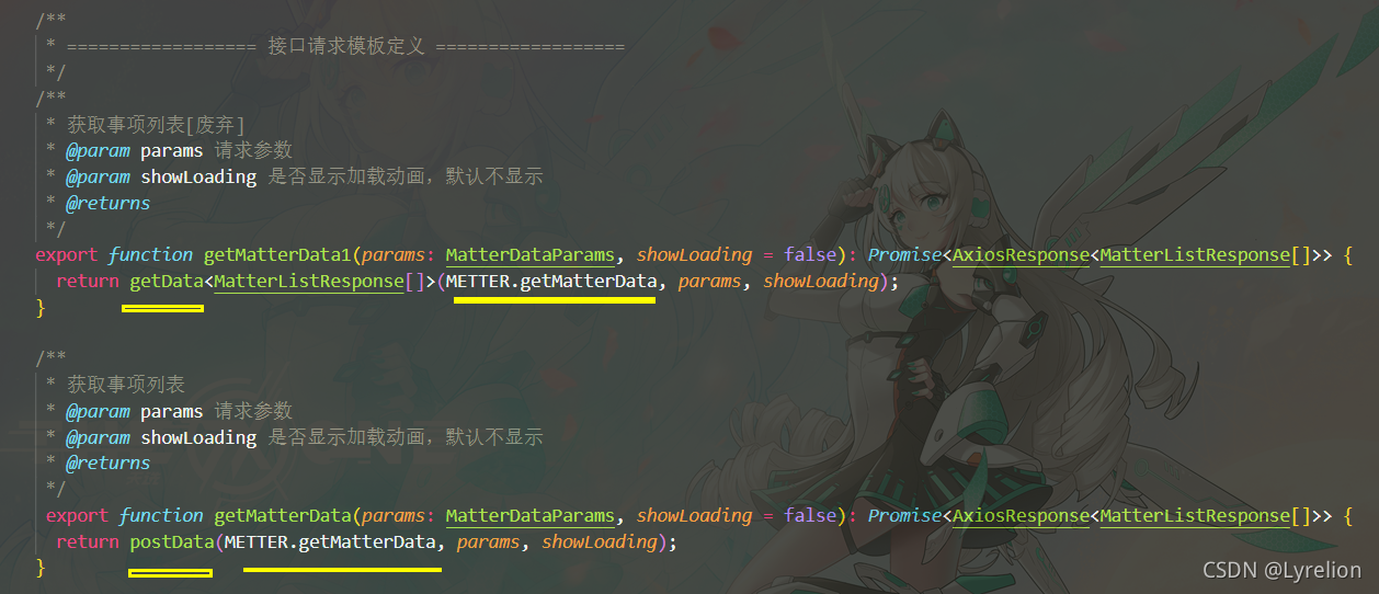 - param 指定接口参数类型,Promise 里接受泛型,传入 接口返回数据类型