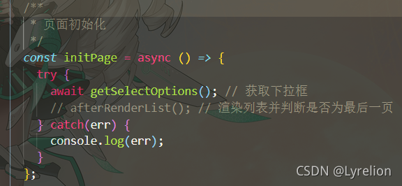 - 此时不能使用 promise.all(),因为此方法只能保证结果获取的顺序,而不能保证方法执行的顺序,也就是说,会同时执行 下拉框获取 / 列表获取 两个方法,而不是先执行下拉框获取并且拿到结果,再执行列表获取方法