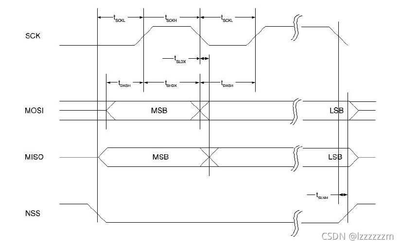 传送数据时:在SCK在上升沿或下降沿时发送器MOSI发送数据,在紧接着的下降沿或上升沿时接收器MISO读取数据,完成一位数据的传送,八个时钟周期完成一个字节的传送。
