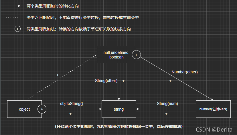 本文主要是关于各种数据类型之间做“+”和”==“运算时数据类型的转化方向,对于类型的具体转换方法及转换值不做过多赘述。