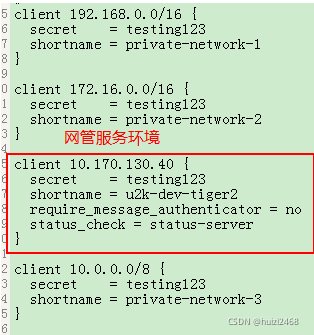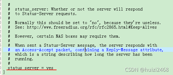 修改此处参数status-server为yes,否则Radius服务器会丢弃网管软件发出的状态探测
