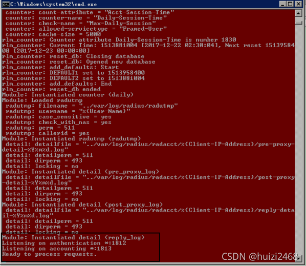 7.打印框内文字,标志Radius启动完毕,启动后界面保持开启状态。