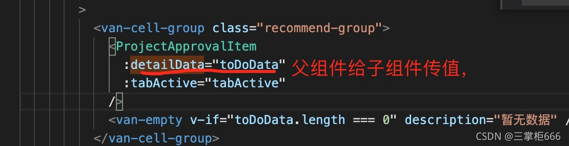 父组件通过props给子组件传值的(组件中的数据有三种:data、props、computed)。