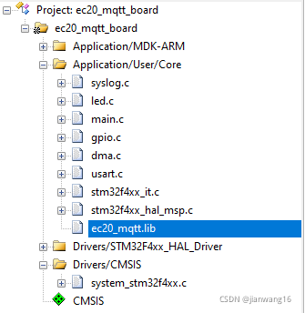 库包括两个文件:ec20_mqtt.h和ec20_mqtt.lib。使用时添加lib文件到工程中,头文件引用ec20_mqtt.h即可。