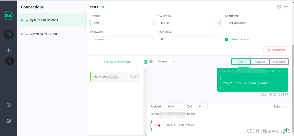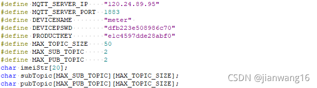 定义变量和私有mqtt服务器信息(我使用了订阅认证和鉴权):